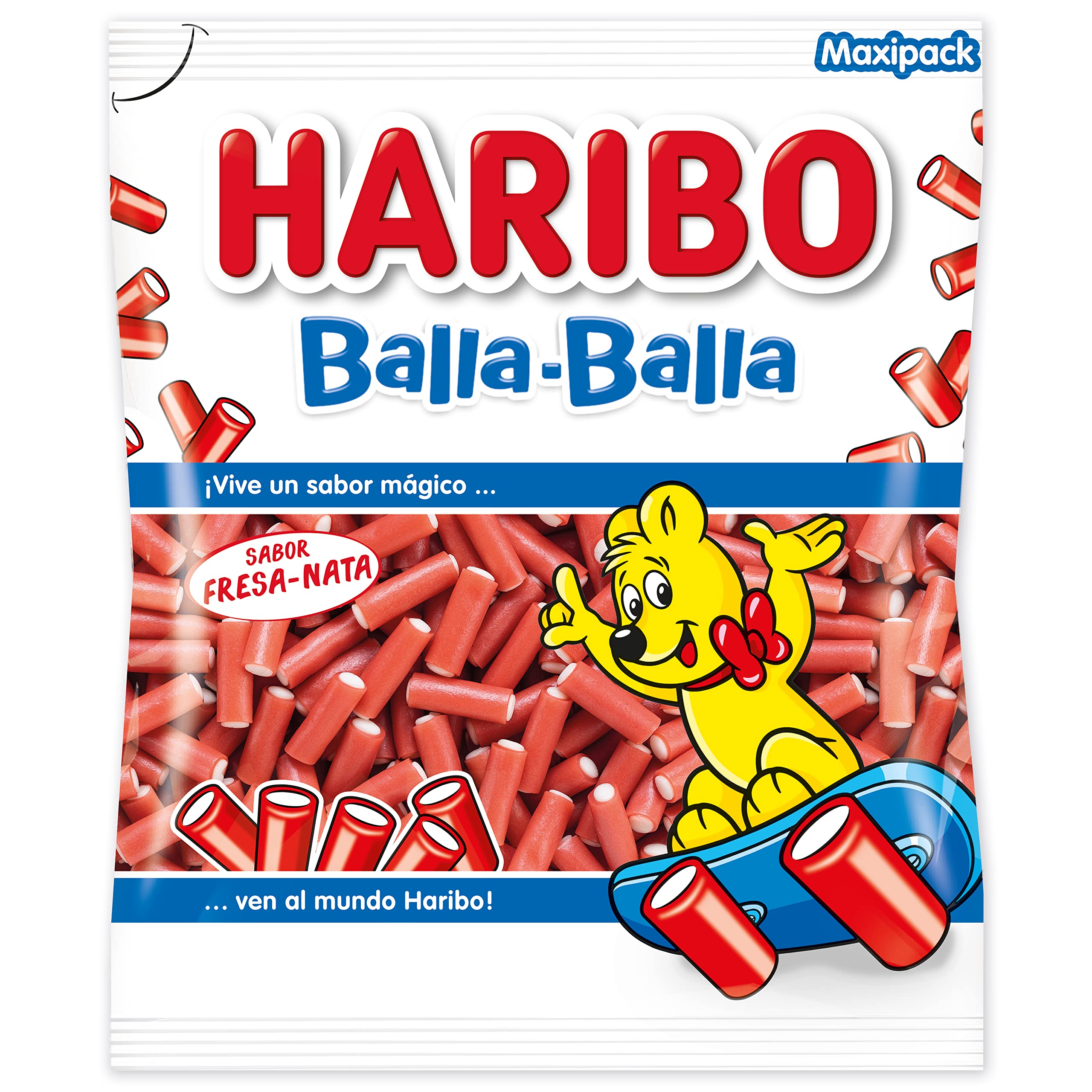 BALLA-BALLA FRESA are soft, tube-shaped gels with a red, strawberry-cream flavored exterior and a cream-flavored sugar paste interior. Perfect for enjoying your Haribo moment! INGREDIENTS Sugar glucose-fructose syrup wheat flour wheat starch palm fat dextrose emulsifier: mono- and diglycerides of fatty acids gelatin acidifier: citric acid sunflower oil flavoring fruit and plant concentrates: radish, apple, blackcurrant glazing agent: beeswax (A, white and yellow). INSTRUCTIONS FOR USE Eat directly from the package no need to open. Not suitable for children under 3 years due to choking hazard. See more