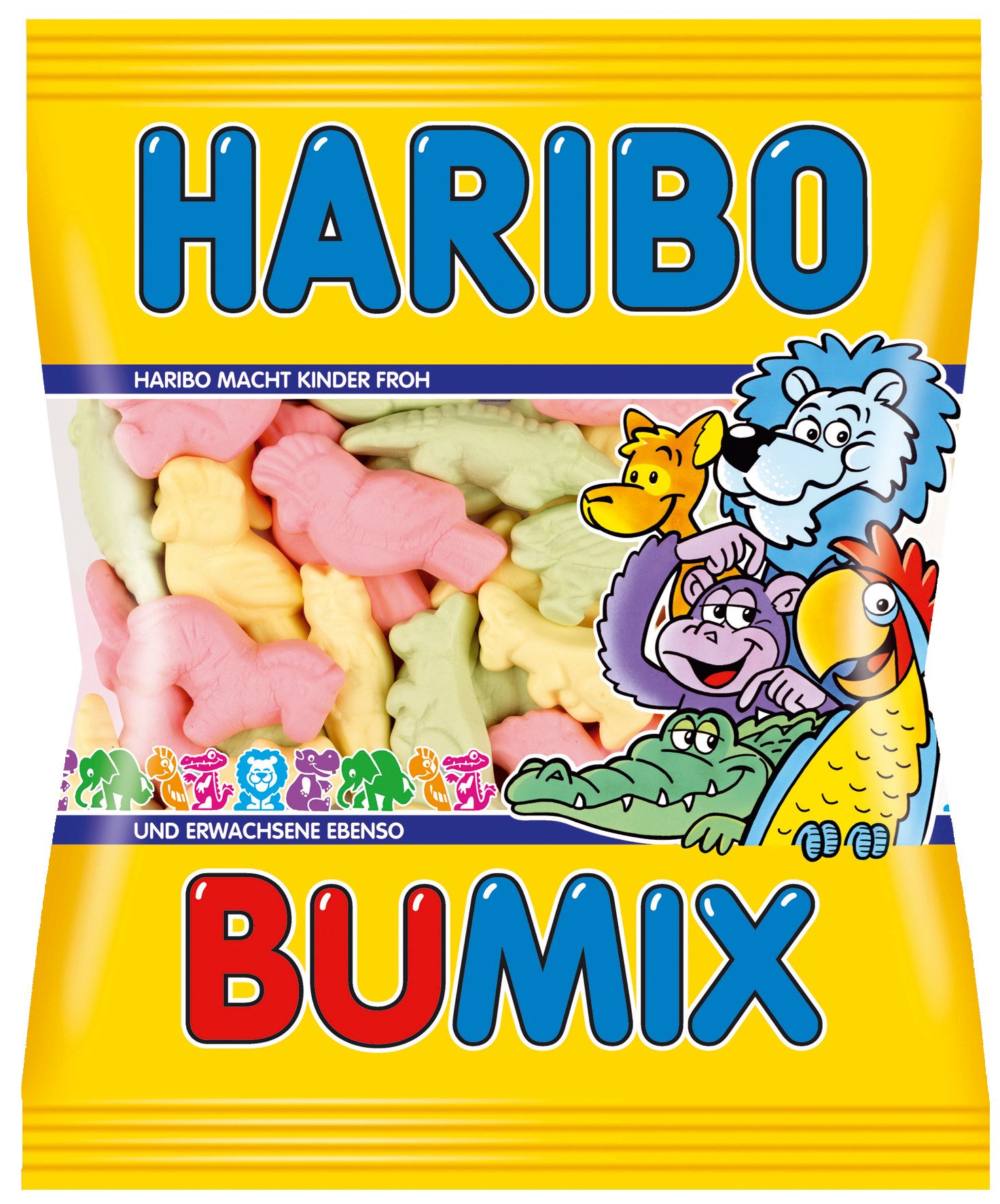 Ingredients: sugar, glucose syrup, dextrose, gelatin, acidifier: citric acid, fruit and plant concentrate: saflor, apple, radish, lemon, spirulina, blackcurrant flavoring glazing agent: white and yellow beeswax, carnauba wax, inverted sugar syrup. Nutritional values per 100g: Energy: 1541 kJ 363 kcal - Fat: 0.5 g of which saturates: 0.1 g - Carbohydrate: 84 g of which sugars: 69 g - Protein: 6.4 g - Salt: 0.05 g - Reference intake of an average adult (84,000 kJ 2,000 kcal). HAR. IBO D-53129 Bonn. INGREDIENTS Sugar glucose syrup dextrose gelatin Fruit and plant concentrate: apple, saflor, lemon, spirulina acidifier: citric acid colors: curcumin, carmine flavorings glazing agent: white and yellow beeswax, carnauba wax invert sugar syrup. This product is allergy-free in accordance with EU legal requirements.Haribo Bumix Lot de 10 (10 x 200 g)DESCRIPTION DU PRODUIT DESCRIPTION DU PRODUIT Ingrédients : sucre, sirop de glucose, dextrose, gélatine, acidifiant : acide citrique, concentré de fruits et de plantes : saflor, pomme, radis, citron, spiruline, cassis arôme agent d'enrobage : cire d'abeille blanche et jaune, cire de carnauba, sirop de sucre inversé. Valeurs nutritionnelles pour 100 g d'énergie : 1541 kJ 363 kcal - Matières grasses : 0,5 g dont acides gras saturés : 0,1 g - Glucides : 84 g dont sucre : 69 g - Protéines : 6,4 g - Sel : 0,05 g - Quantité de référence pour un adulte moyen (84000 kJ 2 kcal). HAR. IBO D-53129 Bonn. INGRÉDIENTS Sucre sirop de glucose dextrose gélatine concentré de fruits et de plantes : pomme, saflor, citron, spiruline acidifiant : acide citrique colorants : curcumine, carmin véritable arômes agent d'enrobage : cire d'abeille blanche et jaune, cire de carnauba sirop de sucre inverti. Cet article ne contient pas d'allergies conformément aux exigences légales de l'UE