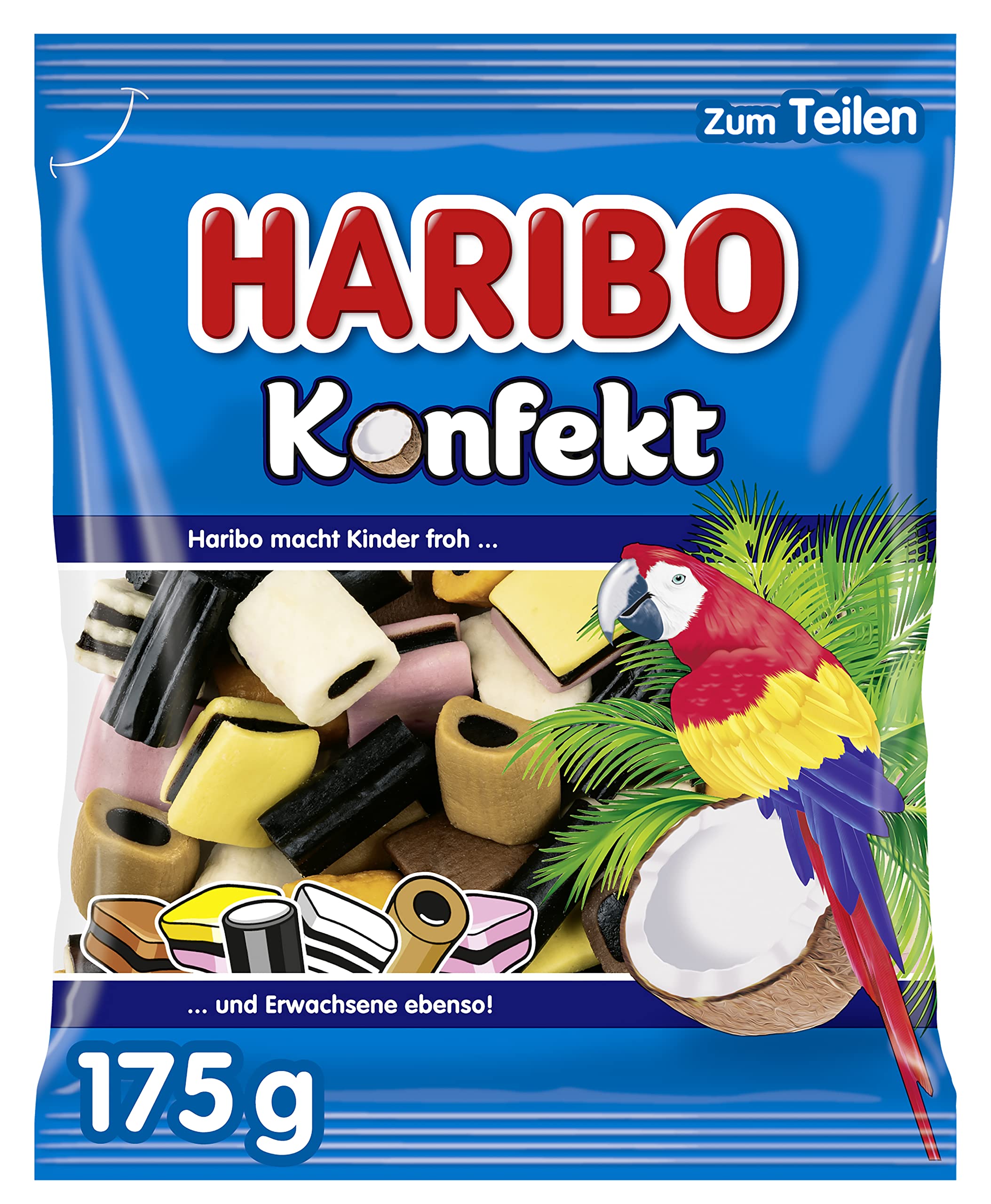 HARIBO candies are delicious treats known worldwide. They are made from quality ingredients and are available in a variety of flavors and shapes. HARIBO Dragees are small, ball-shaped candies coated in sugar and bright colors. HARIBO Bonbons are soft, sweet candies available in a variety of flavors and colors. HARIBO candies are so popular because they are delicious and offer a variety of flavors and colors to satisfy every taste. INGREDIENTS sugar brown sugar syrup glucose syrup wheat flour MILK SUGAR starch dextrose palm oil desiccated coconut (7.5 for white and orange candies) MAGICOLATIC MILK SPRAY licorice extract (3 of the licorice content) fat-reduced cocoa powder gelatin Flavoring table salt fruit and plant concentrates: apple, beetroot, carrot, bell pepper, safflower, pumpkin, tomato caramel syrup glazing agents: white and yellow beeswax, carnauba wax acidifier: citric acid. INSTRUCTIONS FOR USE Consume in moderation as part of a balanced diet. Keep out of reach of young children to avoid any risk of suffocation. Store away from heat and humidity. See more