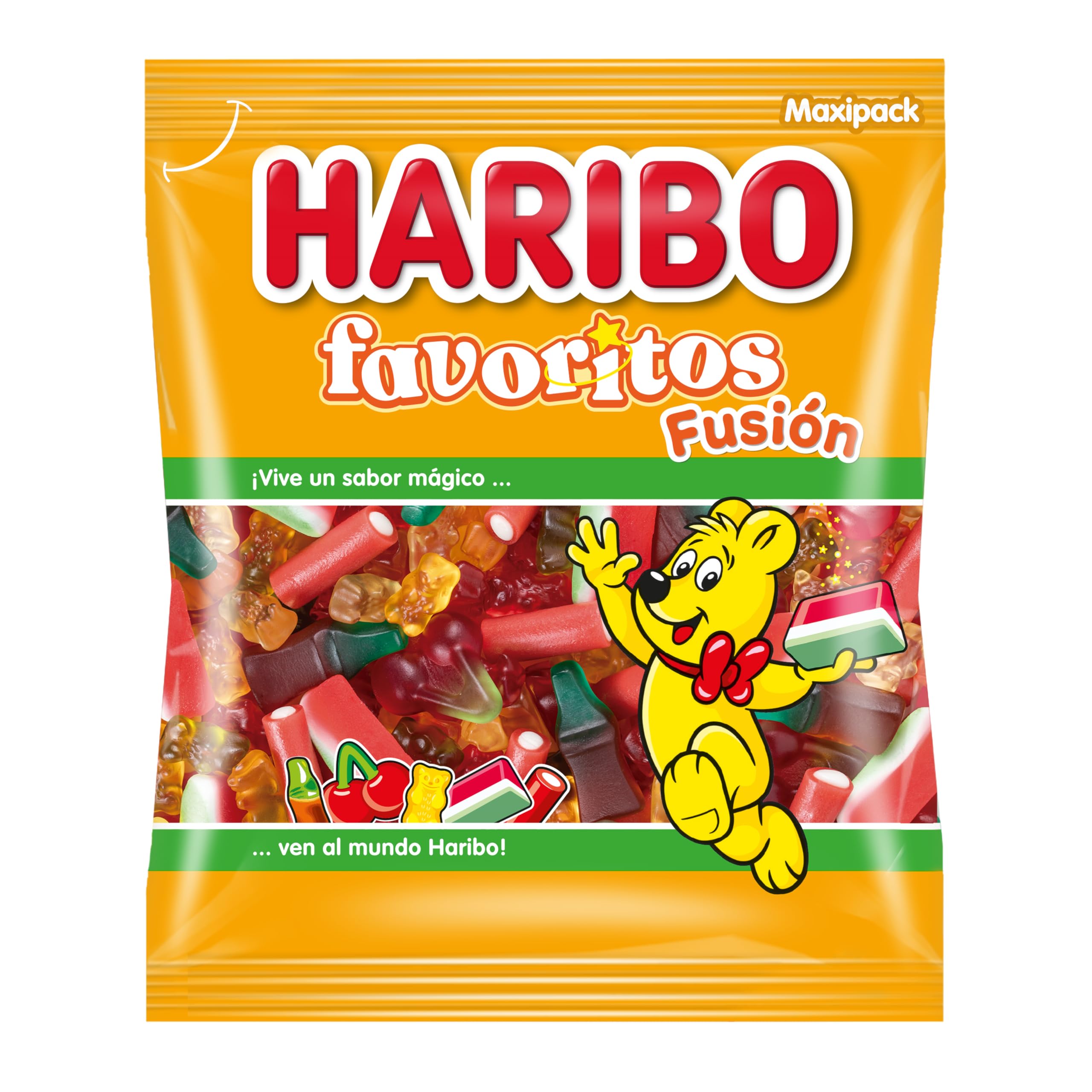 The new Favoritos Fusion is a delicious assortment of TOP candies with different flavors and textures such as: Goldbears, cherries, cola, watermelon, and strawberry Balla Balla. INGREDIENTS Glucose and fructose syrup sugar water gelatin wheat flour humectant: sorbitol syrup acid: citric acid dextrose fruit juices from concentrate: lemon, apple, orange, raspberry, strawberry, pineapple wheat starch palm fat emulsifier: monoglycerides and diglycerides of fatty acids sunflower oil gelling agent: amide pectin acidity regulator: trisodium citrate flavoring Fruit and plant concentrates: radish, apple, blackcurrant, happiness, carrot, safflower, hibiscus, lemon, spirulina, kiwi, elderberry, aronia, grape, orange, mango, passion fruit elderberry extract caramel syrup. Color: Blue patent V Coating agent: beeswax, white and yellow. INSTRUCTIONS FOR USE Keep out of reach of children under 3 years of age due to the risk of suffocation. May contain small parts. See moreHARIBO Favoris Fusion 1kgDESCRIPTION DU PRODUIT DESCRIPTION DU PRODUIT Le nouveau Favoritos Fusion est un délicieux assortiment de bonbons TOP avec différentes saveurs et textures telles que : ours d'or, cerises, cola, pastèque et balla balla fraise INGRÉDIENTS Sirop de glucose et fructose sucre eau gélatine farine de blé humectant: sirop de sorbitol acidifiant : acide citrique dextrose jus de fruits à partir de concentrés: citron, pomme, orange, framboise, fraise, ananas, amidon de blé graisse de palme émulsifiant: monoglycérides et diglicérides acides cérides Grais Huile de tournesol Gélifiant : pectine amidéée correcteur d'acidité : citrate trisodique arôme concentrés de fruits et plantes : radis, pomme, cassis, bonheur, carotte, carthame, hibiscus, citron, spiruline, kiwi, baie de sureau, aronia, raisin, orange, mangue, fruit de la passion extrait de baie de sureau sirop caramel colorcolorcolorcolorcolorAvant : bleu brevet V Agent de revêtement: cire d'abeille, blanche et jaune. MODE D'EMPLOI Tenir hors de portée des enfants de moins de 3 ans en raison du risque d'étouffement. Peut contenir de petites pièces. Voir plus