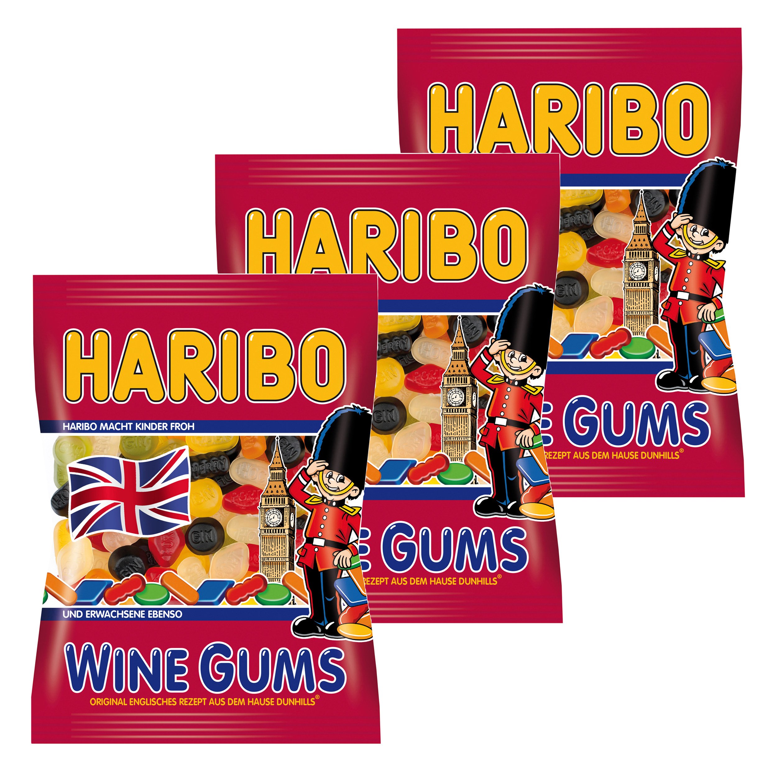 Haribo Wine Gums, gummy bears, wine gum, fruit-flavored gum, in a bag, 200g bag: Haribo Wine Gums are an ideal product for all lovers of this typical English gummy treat, made according to the original English recipe from the Dunhills brand. The texture and fruity flavors of pineapple, raspberry, lime, orange juice, blackcurrant, and lemon make this product an incomparable delight. Producer Manufactured for: HARIBO GmbH Co. KG, Hans-Riegel-Straße 1, 53129 Bonn – Germany – Ingredients: HA297: glucose syrup, sugar, turmeric, water, gelatin, acidifiers: citric acid, acetic acid, fruit and plant concentrates: safflower, spirulina, apple, elderberry, orange, blackcurrant, kiwi, lemon, mango, paste. Fruit flavoring: Aronia berries, grapes, flavoring, coloring: plant-based charcoal, elderberry extract, coating agents: white and yellow beeswax, carnauba wax, caramel syrup. Contents: 3 x 1 Haribo Wine Gums, gummy bears, wine-flavored gum, fruit-flavored gum, in a bag, 200g pack. INSTRUCTIONS FOR USE Open the pack and eat the gummies.HARIBO Wine Gums, Lot de 3, Caoutchouc - Babyours - Vin en Caoutchouc, Fruit Caoutchouc en Sachet, Pochette, 200 gDESCRIPTION DU PRODUIT DESCRIPTION DU PRODUIT Haribo Wine Gums, oursons en caoutchouc, caoutchouc de vin, caoutchouc aux fruits, dans un sac, sac de 200 g : Haribo Wine Gums est un produit idéal pour tous les amateurs de spécialité typique anglaise en caoutchouc selon la recette anglaise originale de la marque Dunhills. La consistance et les saveurs fruitées d'ananas, de framboise, de citron vert, d'orange jus, de cassis et de citron font de ce produit un plaisir incomparable. Producteur fabriqué pour : HARIBO GmbH Co. KG, Hans-Riegel-StraÃe 1, 53129 Bonn – Allemagne – Ingrédients : HA297 : sirop de glucose, sucre, tempête, eau, gélatine, acidifiant : acide citrique, acide acétique, concentré de fruits et de plantes : carthame, spiruline, pomme, sureau, orange, cassis, kiwi. citron, mangue, paste. fruit de dégustation, aronia, raisin, arôme, colorant : charbon de plantes, extrait de baies de sureau, agent de revêtement : cire d'abeille blanche et jaune, cire de carnauba, sirop de caramel. Contenu de la livraison : 3 x 1 Haribo Wine Gums, oursons en caoutchouc, caoutchouc à vin, caoutchouc aux fruits, dans un sac, sachet de 200 g MODE D'EMPLOI Ouvrir le paquet et manger les bonbons.