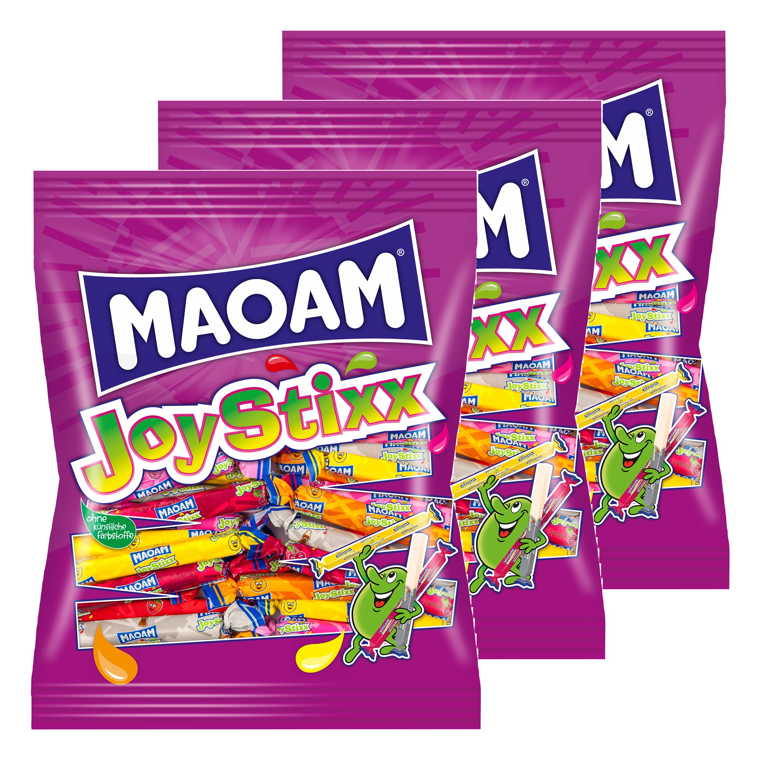 Haribo Maoam Joystixx, 3er Set, Kaubonbon Stripes, Joy Stixx, Bonbons, Im Beutel, Tüte, 975 g