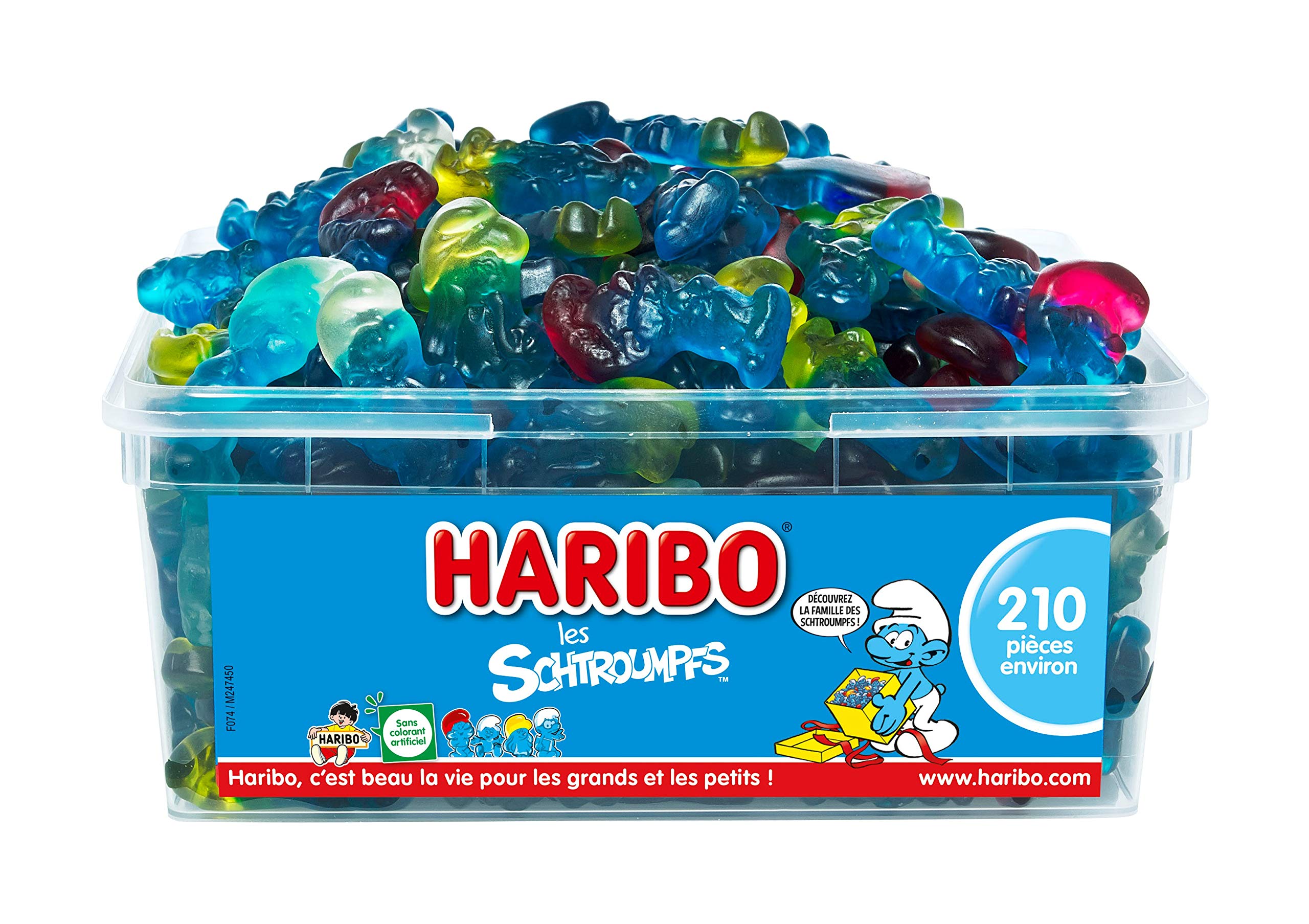 Who doesn't know HARIBO and its famous slogan "HARIBO, life is beautiful, for adults and children"? In 2020, this family business, run by the third generation, is celebrating its 100th anniversary. Created in 1920 in Germany, the confectionery brand has conquered the hearts of the whole world with its fun, original and above all very good candies. An international leader in the field of fruit and licorice gelled confectionery, HARIBO is present in more than 100 countries, has 16 production sites and employs 7,000 people around the world. Attaching great importance to the satisfaction of its consumers, HARIBO has continued to develop new confectioneries adapted to all tastes for a century. Golden bears, liquorice rolls, Tagada strawberries and others are all cult treats, made essential by the brand. And if the success is there, it is because HARIBO pays close attention to the quality of its candies: everything is checked and controlled carefully, from the reception of the raw materials (ingredients, packaging components, boxes), to the final packaging of the confectionery, through each stage of production. HARIBO also benefits from FSSC 22000 certification, a safety standard much higher than what current regulations require. You can enjoy yourself with your eyes closed! The HARIBO Smurfs are back in a Classic version to amuse and delight the taste buds of young and old alike. These delicious candies featuring the image of Papa Smurf, Smurfette and the other members of the Smurf village are covered in a sugar that tingles the tongue before giving way to the sweet sweetness of the jelly confectionery. Sold in bulk in boxes of 210 units, they are perfect for spending happy moments with family or friends. INGREDIENTS Ingredients: glucose syrup sugar gelatin dextrose: citric acid acidifier aroma fruit and plant concentrates: spirulina, safflower. lemon. carrot invert sugar syrup coating agents: white and yellow beeswax, camauba wax) Keep away from heat andHARIBO 67, boulevard du Capitaine Geze. F-13014 Marseille. Qui ne connaît pas HARIBO et son célèbre slogan « HARIBO, c'est beau la vie, pour les grands et les petits » ? En 2020, cette entreprise familiale, dirigée par la troisième génération, fête ses 100 ans d'existence. Créée en 1920 en Allemagne, la marque de confiserie a su conquérir le cœur du monde entier avec ses bonbons amusants, originaux et surtout très bons. Leader international dans le domaine des confiseries gélifiées aux fruits et à la réglisse, HARIBO est présent dans plus de 100 pays, possède 16 sites de production et emploie 7000 personnes partout dans le monde. Attachant une grande importance à la satisfaction de ses consommateurs, HARIBO ne cesse de mettre au point de nouvelles confiseries adaptées à tous les goûts depuis un siècle. Ours d'or, rouleaux de réglisse, fraises Tagada et autres sont autant de friandises cultes, rendues incontournables par la marque. Et si le succès est là, c'est parce que HARIBO porte une attention soutenue à la qualité de ses bonbons : tout est vérifié et contrôlé avec soin, depuis la réception des matières premières (ingrédients, composants des emballages, cartons), jusqu'au conditionnement final des confiseries, en passant par chaque étape de la production. HARIBO bénéficie d'ailleurs d'une certification FSSC 22000, une norme de sécurité bien plus élevée que ce qu'exige la réglementation en vigueur. Vous pouvez vous régaler les yeux fermés ! Les Schtroumpfs HARIBO reviennent en version Classqiue pour amuser et flatter les papilles des petits comme des grands. Ces délicieux bonbons à l'effigie du grand Schtroumpf, de la Schtroumpfette et des autres membres du village Schtroumpf sont couverts d'un sucre qui pique la langue avant de laisser place à la douceur sucrée de la confiserie gélifiée. Vendus en vrac en boîte de 210 unités, ils sont parfaits pour passer de joyeux moments en famille ou entre amis. INGRÉDIENTS Ingrédients: sirop de glucose sucre gélatine dextrose: acidifiant acide citrique arôme concentrés de fruits et de plantes: spiruline, carthame. citron. carotte sirop de sucre inverti agents d' enrobage: cire d'abeille blanche et jaune, cire de camauba )Tenir á l'abril de la chaleur et deHARIBO 67, boulevard du Capitaine Geze. F-13014 Marseille.