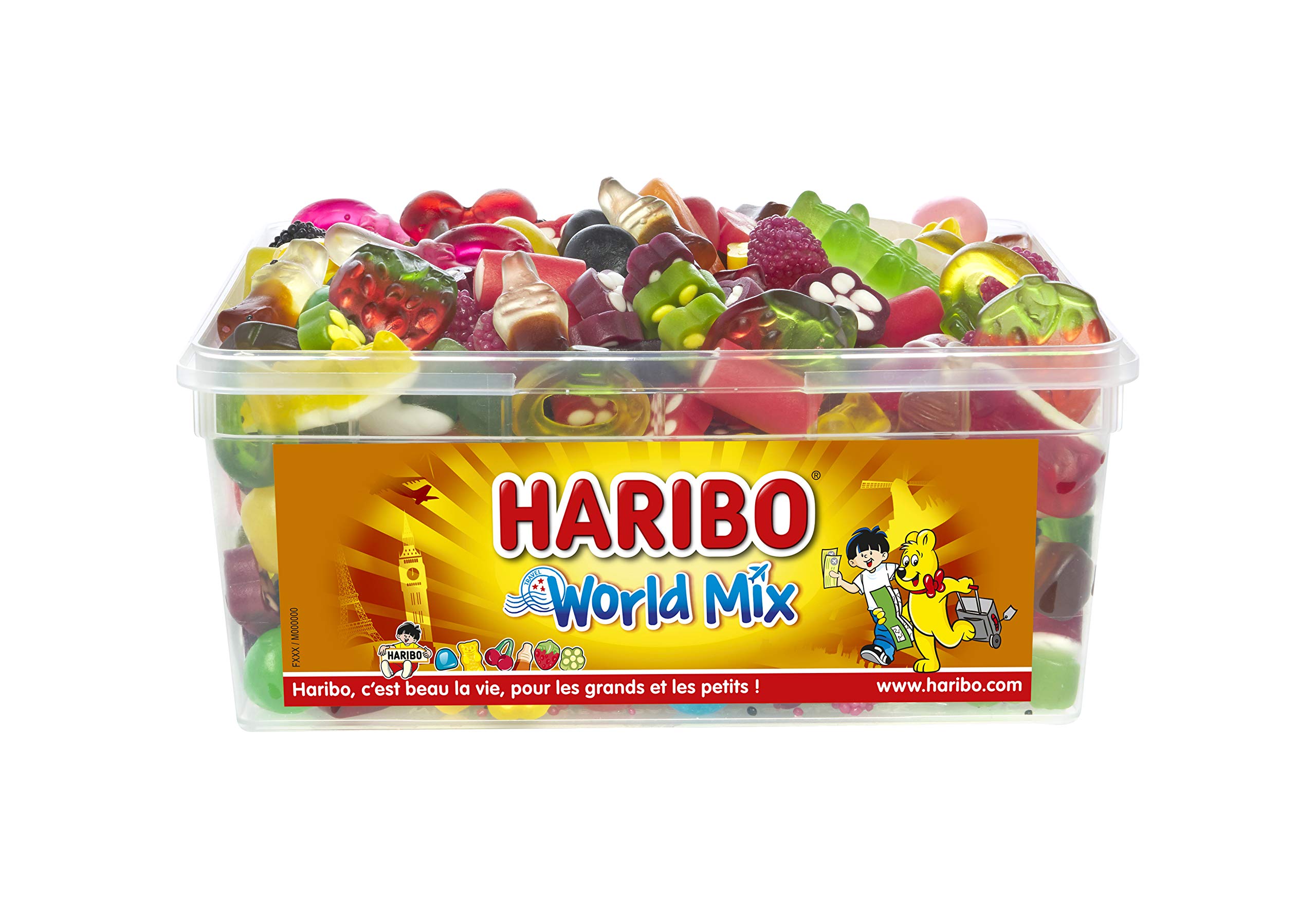 Who doesn't know HARIBO and its famous slogan "HARIBO, life is beautiful, for adults and children"? In 2020, this family business, run by the third generation, is celebrating its 100th anniversary. Created in 1920 in Germany, the confectionery brand has conquered the hearts of the whole world with its fun, original and above all very good candies. An international leader in the field of fruit and licorice gelled confectionery, HARIBO is present in more than 100 countries, has 16 production sites and employs 7,000 people around the world. Attaching great importance to the satisfaction of its consumers, HARIBO has continued to develop new confectioneries adapted to all tastes for a century. Golden bears, liquorice rolls, Tagada strawberries and others are all cult treats, made essential by the brand. And if the success is there, it is because HARIBO pays close attention to the quality of its candies: everything is checked and controlled carefully, from the reception of the raw materials (ingredients, packaging components, boxes), to the final packaging of the confectionery, through each stage of production. HARIBO also benefits from FSSC 22000 certification, a safety standard much higher than what current regulations require. You can enjoy yourself with your eyes closed! Do you love Croco, Pacifiers, Happy Cola, Happy Cherry, Berries, Jelly Babies gummies? Good news, we have brought them together for you in a single box that will delight all serious gourmands, but also constitute a gift of choice for all candy lovers. INGREDIENTS glucose syrup sugar gelatin WHEAT flour dextrose acidifiers: citric acid, malic acid acidity regulators: monosodium citrate, sodium acid malate corn starch WHEAT starch palm fat emulsifier: mono- and diglycerides of fatty acids gelling agent: agar-agar aroma fruit and plant concentrates: spirulina, safflower, apple, radish, blackcurrant, elderberry, aronia, grape, carrot, hibiscus, orange, lemon, mango, passion fruit elderberry extract caramel syrup colorants: curcumin, vegetable charcoal, vegetable carotenes, lutein, anthocyanins coating agents: white and yellow beeswax, carnauba wax. NON-CONTRACTUAL MIXTURE. Keep away from heat and humidity. May contain traces of milk. DIRECTIONS FOR USE Box to close after use SAFETY WARNING Not suitable for children under 3 years old HARIBO, LIFE IS BEAUTIFUL: Since its creation over 100 years ago, HARIBO has delighted entire generations of gourmands around the world. HARIBO products are a little sweet interlude, a link to childhood, a moment of sweetness in our daily lives. THE PLEASURE OF SHARING: To be enjoyed alone, with family or friends, these delicious candies are packaged in 900g boxes. GOOD! GOOD TO KNOW: These delicious gummies are made with love without artificial coloring. ALL YOUR FAVORITE TREATS: Croco, Pacifiers, Happy Cola, Happy Cherry, Berries, Jelly Babies. the World Mix includes an assortment of our star candies, there will be something for everyone! Qui ne connaît pas HARIBO et son célèbre slogan « HARIBO, c'est beau la vie, pour les grands et les petits » ? En 2020, cette entreprise familiale, dirigée par la troisième génération, fête ses 100 ans d'existence. Créée en 1920 en Allemagne, la marque de confiserie a su conquérir le cœur du monde entier avec ses bonbons amusants, originaux et surtout très bons. Leader international dans le domaine des confiseries gélifiées aux fruits et à la réglisse, HARIBO est présent dans plus de 100 pays, possède 16 sites de production et emploie 7000 personnes partout dans le monde. Attachant une grande importance à la satisfaction de ses consommateurs, HARIBO ne cesse de mettre au point de nouvelles confiseries adaptées à tous les goûts depuis un siècle. Ours d'or, rouleaux de réglisse, fraises Tagada et autres sont autant de friandises cultes, rendues incontournables par la marque. Et si le succès est là, c'est parce que HARIBO porte une attention soutenue à la qualité de ses bonbons : tout est vérifié et contrôlé avec soin, depuis la réception des matières premières (ingrédients, composants des emballages, cartons), jusqu'au conditionnement final des confiseries, en passant par chaque étape de la production. HARIBO bénéficie d'ailleurs d'une certification FSSC 22000, une norme de sécurité bien plus élevée que ce qu'exige la réglementation en vigueur. Vous pouvez vous régaler les yeux fermés ! Vous adorez les bonbons gélifiés Croco, Tétines, Happy Cola, Happy Cherry, Berries, Jelly Babies ? Bonne nouvelle, nous les avons réunis pour vous dans une seule boîte qui pourra régaler tous les grands gourmands, mais aussi constituer un cadeau de choix pour tous les amateurs de bonbons. INGRÉDIENTS sirop de glucose sucre gélatine farine de BLE dextrose acidifiants: acide citrique, acide malique correcteurs d'acidité: citrate monosodique, malate acide de sodium amidon de maïs amidon de BLE graisse de palme émulsifiant: mono- et diglycérides d'acides gras gélifiant: agar-agar arôme concentrés de fruits et de plantes: spiruline, carthame, pomme, radis, cassis, baie de sureau, aronie, raisin, carotte, hibiscus, orange, citron, mangue, fruit de la passion extrait de baie de sureau sirop de caramel colorants: curcumine, charbon végétal, carotènes végétaux, lutéine, anthocyanes agents d'enrobage: cire d'abeille blanche et jaune, cire de carnauba. MELANGE NON CONTRACTUEL. Tenir à l'abri de la chaleur et de l'humidité. Peut contenir des traces de lait. MODE D'EMPLOI Boite à refermer après utilisation AVERTISSEMENT DE SÛRETÉ Ne convient pas aux enfants de moins de 3 ans HARIBO, C'EST BEAU LA VIE : Depuis sa création il y a plus de 100 ans, HARIBO régale des générations entières de gourmands à travers le monde. Les produits HARIBO constituent une petite parenthèse sucrée, un lien avec l'enfance, un instant de douceur dans notre quotidien. LE PLAISIR DE PARTAGER : À déguster en solo, en famille ou entre ami