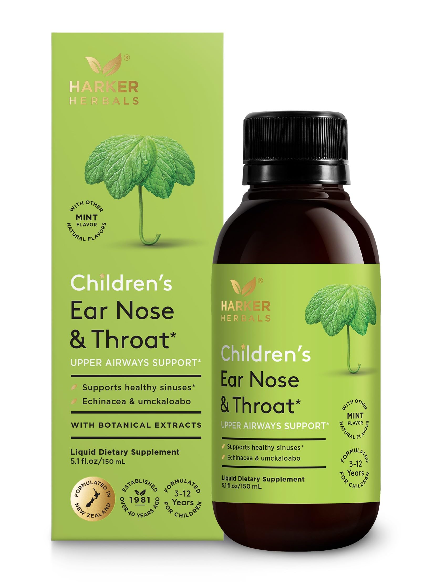 Harker Herbals Children's Ear Nose & Throat Syrup, Herbal Formula for Sinuses & Seasonal Wellness Includes Echinacea, Pelargonium & Elderflower, Plant-Based - 5.1 Fl oz (30 Servings)