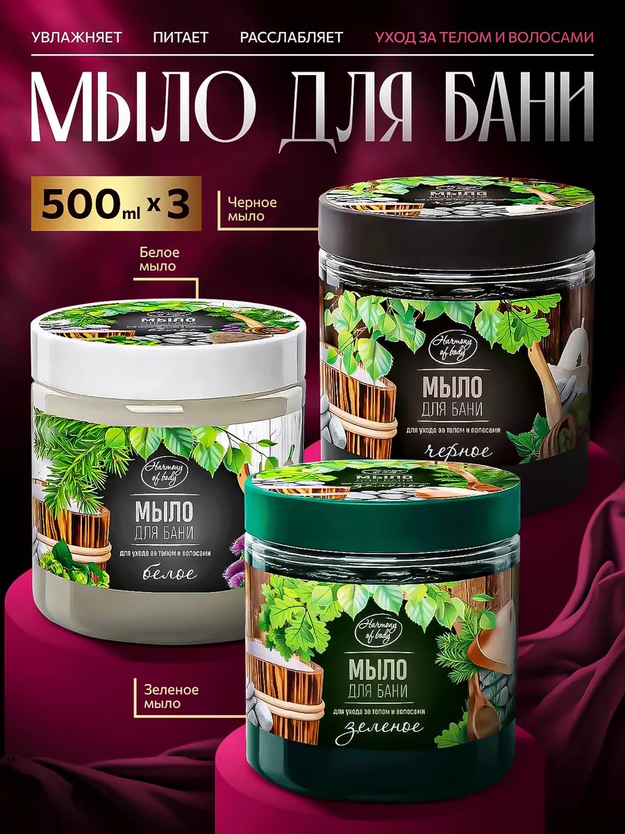 Мыло для бани в банке для волос и тела жидкое 3 шт