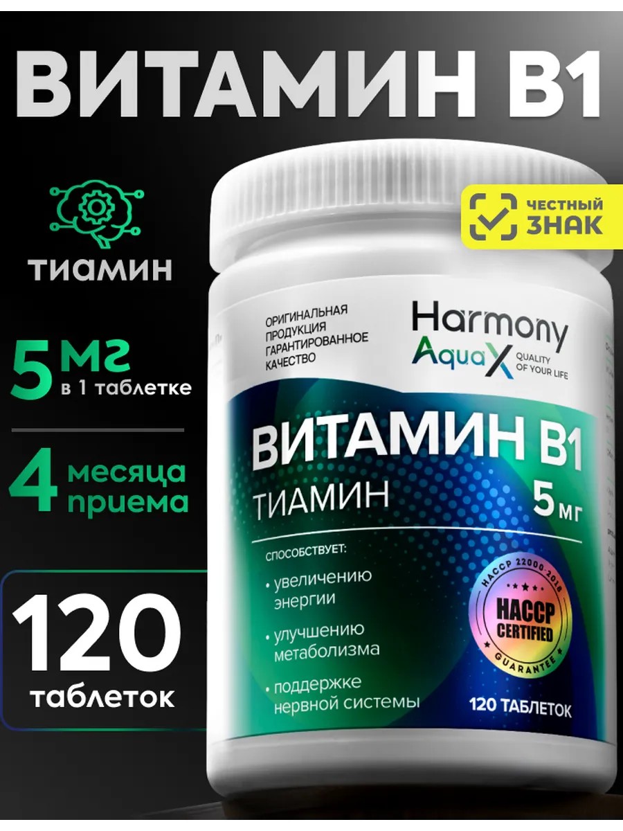 HarmonyAquaX Витамин В1 Тиамин в таблетках