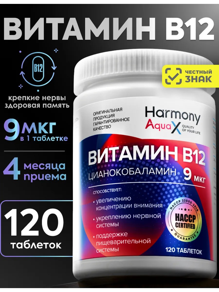 HarmonyAquaX Витамин B12, В12 120 таблеток
