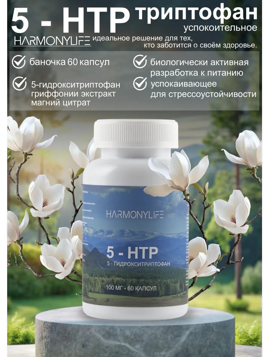 Продукт 5-HTP 60 капсул от стресса и бессонницы. БАД 5-HTP эффективное средство для поддержания здоровья нервной системы HarmonyLife – идеальное решение для тех, кто заботится о своем здоровье и хочет поддерживать его на высоком уровне постоянно, естественный путь к хорошему настроению, крепкому сну и контролю веса.