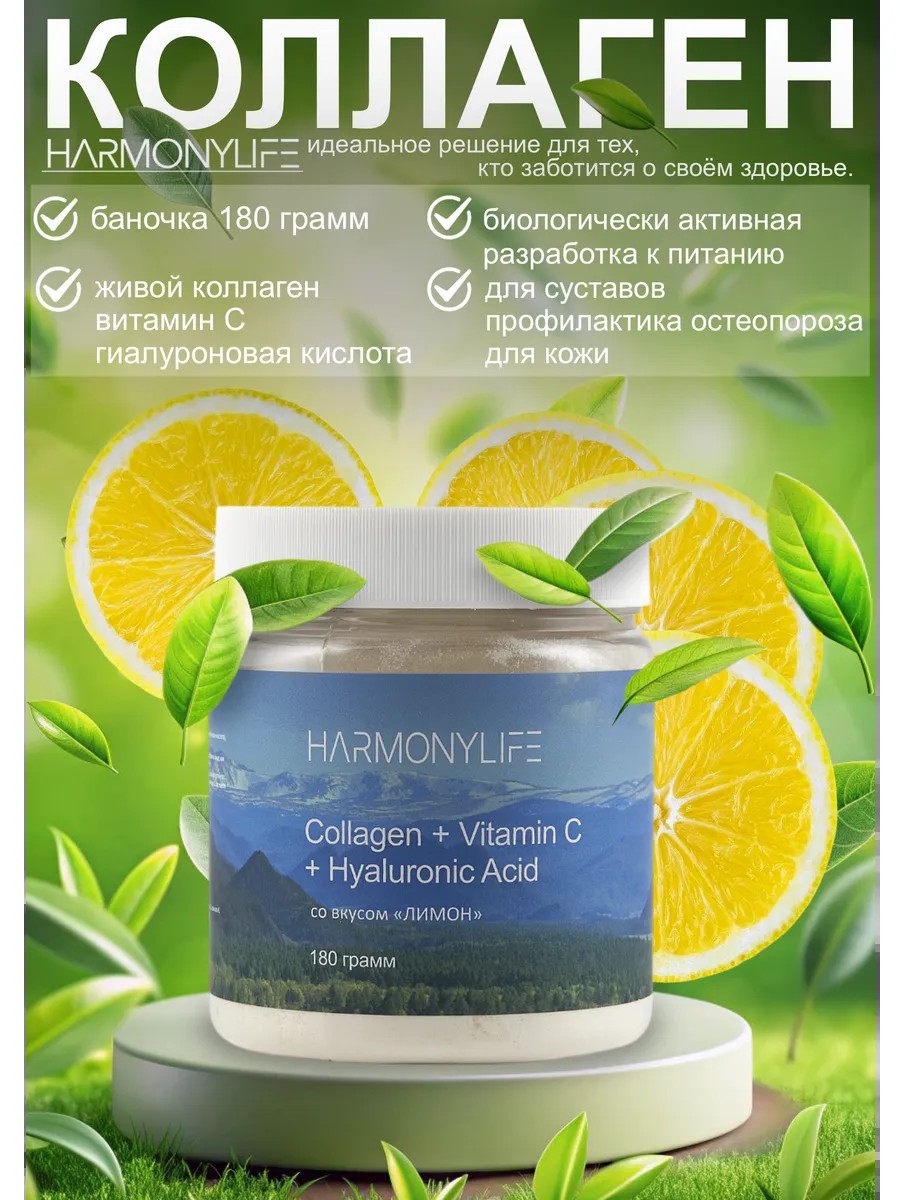 HarmonyLife Коллаген порошок с витамином С, вкус лимон 180 гр
