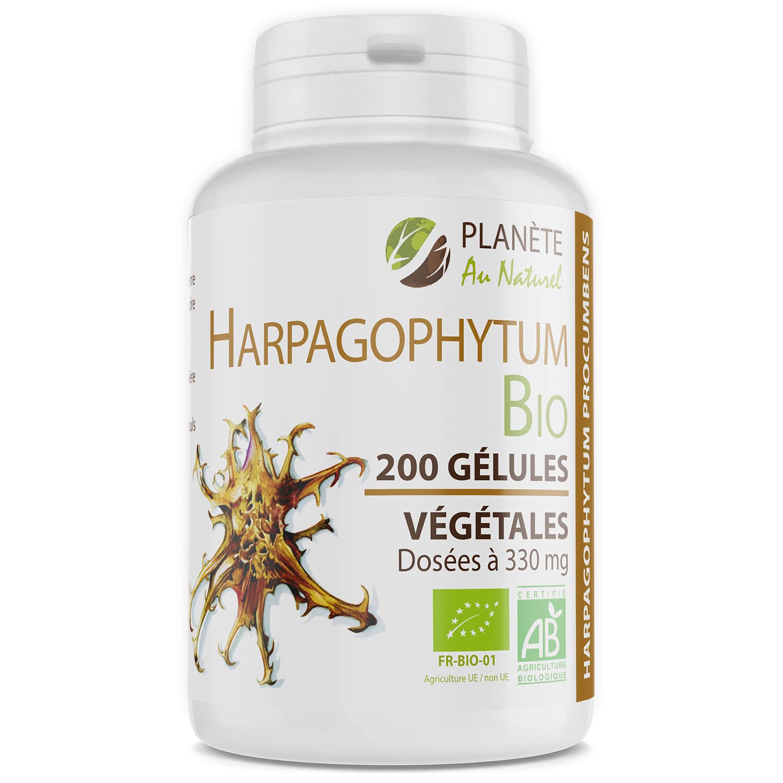 Certified Organic. 2 to 3 capsules per day with a large glass of water during meals, as part of a balanced diet. Organic Harpagophytum (Procumbens) - 330mg - 200 vegetarian capsules.Certifié Agriculture Biologique. 2 à 3 gélules par jour avec un grand verre d'eau au cours des repas, et dans le cadre d'une alimentation équilibrée. Harpagophytum Bio (Procumbens) - 330mg - 200 gélules végétales.