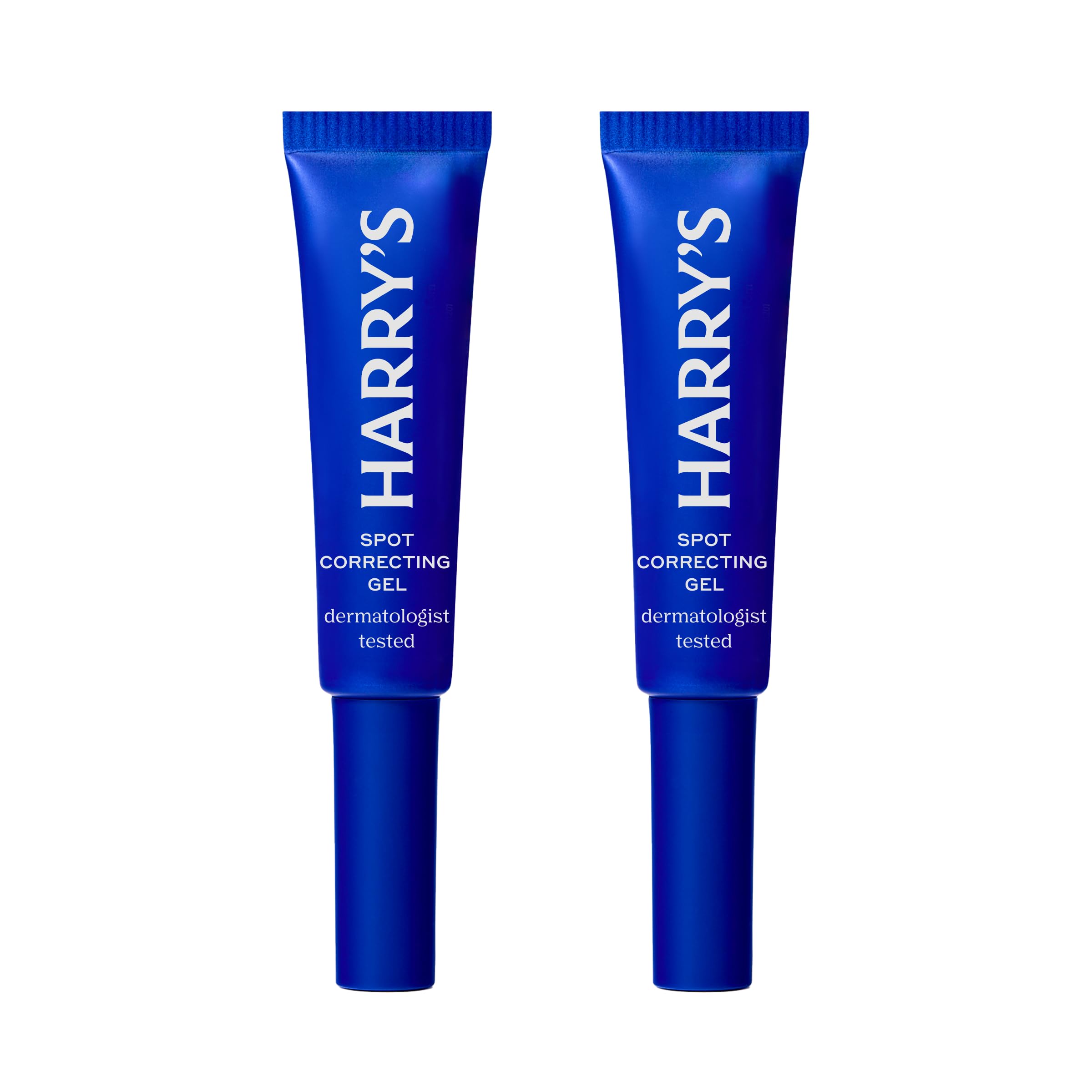 Harry's Spot Correcting Gel on tiled counter; targets blemishes to visibly improve skin clarity.
