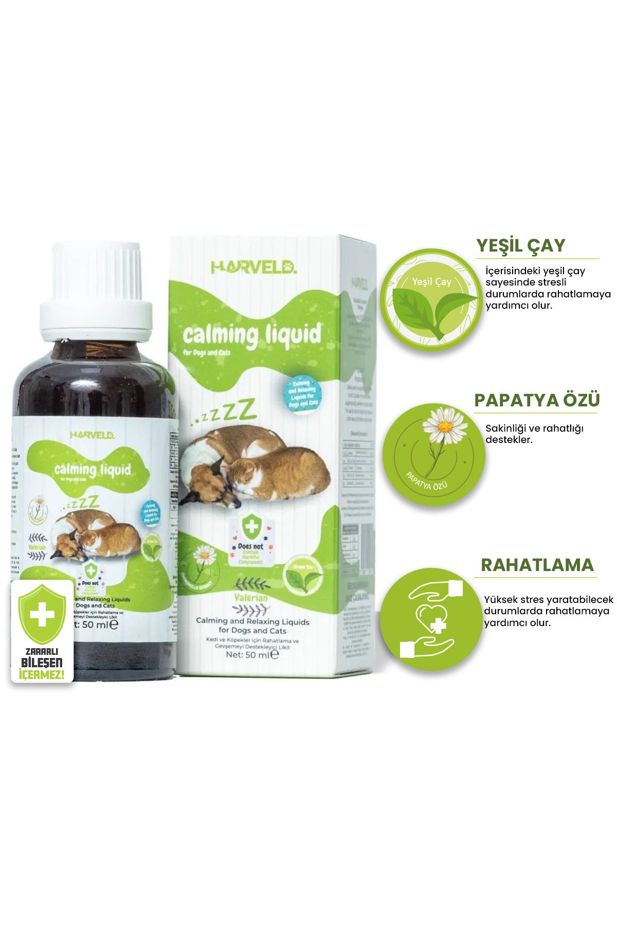 HARVELD Calming Down is specially designed to help your lovely friends, cats and dogs, cope with stressful situations. It reduces stress in cats and dogs, especially during travel, and provides a relaxing and soothing effect in daily life. In stressful situations such as environmental changes, loud events, travel or new experiences, this product helps reduce stress by providing calmness and comfort. It can be used in the process of meeting a new home, new people or a new pet, during mating visits and similar situations. HARVELD Calming Down is an ideal option to support the health of your cats and dogs and help them live a calmer and happier life. It is used once a day, directly orally or by adding to their food, as specified in the usage amount table. Store at room temperature (25 C), closed and away from sunlight. For use only in cats and dogs. Do not use in other animals. Keep out of reach of children. Safe use in pregnant animals or animals intended for breeding has not been proven. If an unexpected effect is observed, stop use of the product and consult your veterinarian. ''THIS IS NOT A MEDICINE. IT IS COMPLEMENTARY FEED FOR CATS AND DOGS. NOT FOR THERAPEUTIC PURPOSES.