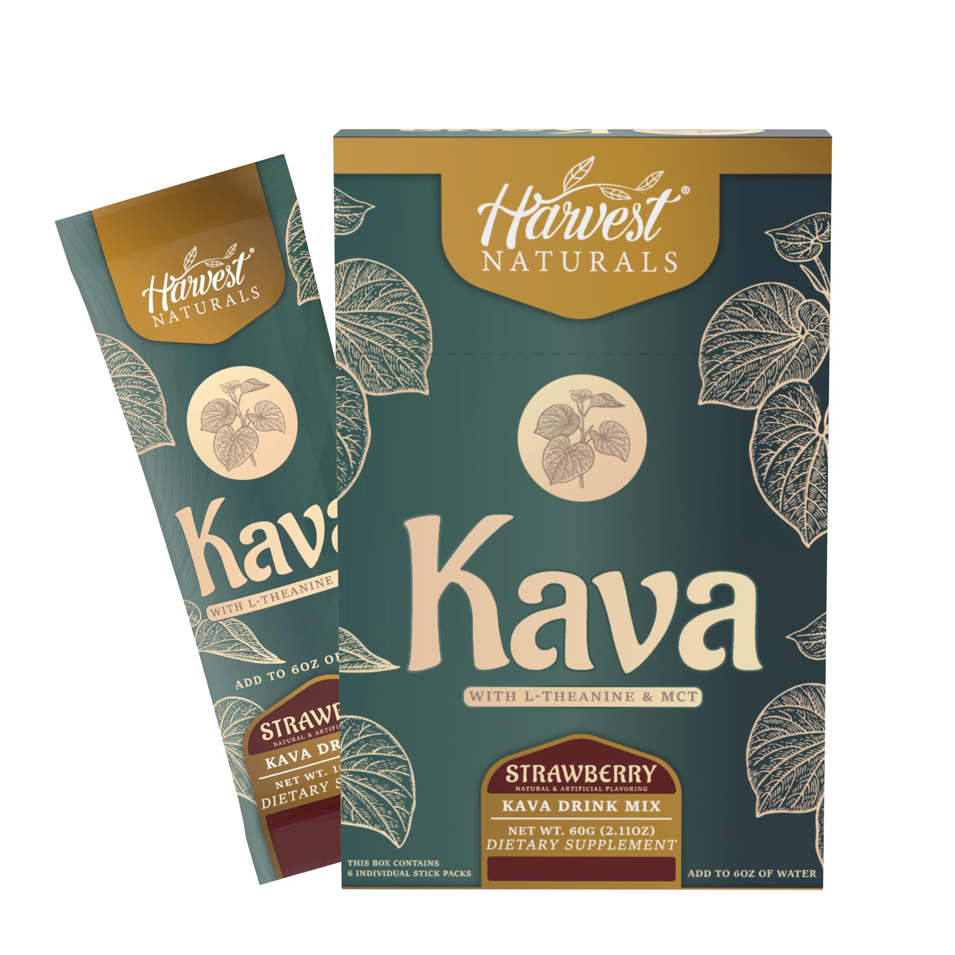 HARVEST NATURALS Kava Extract with L-Theanine & MCT Drink Mix | Strawberry Flavor | On-The-Go Sticks Add to Water | 6 Sticks (6 Servings)