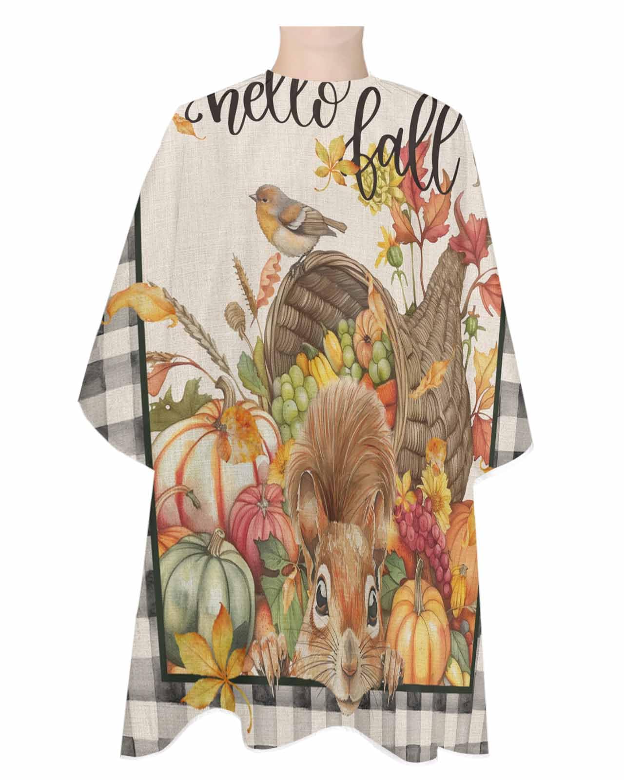 Harvest Pumpkin Squirrel Barber Cape - Salon Hair Cutting Cape for Women Men Kids Adults Thanksgiving Fall Fruits Black Buffalo Plaid Haircut Cape with Adjustable Elastic Neckline Accessories 1 piece 55x63 Inch Pumpkin Orange Light Gray