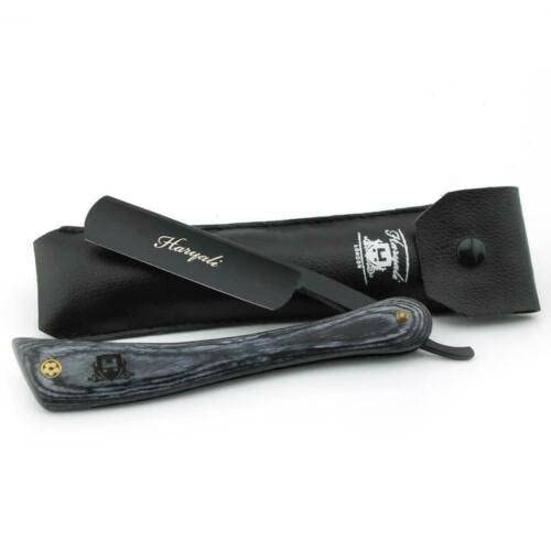 Haryali London Cut Throat Rasierset – Holzgriff Straight Razor – Professioneller Barber Rasierer für Männer, Schnurrbart Bart Männer Rasierset – Schwarzgrau (quadratische Spitze)