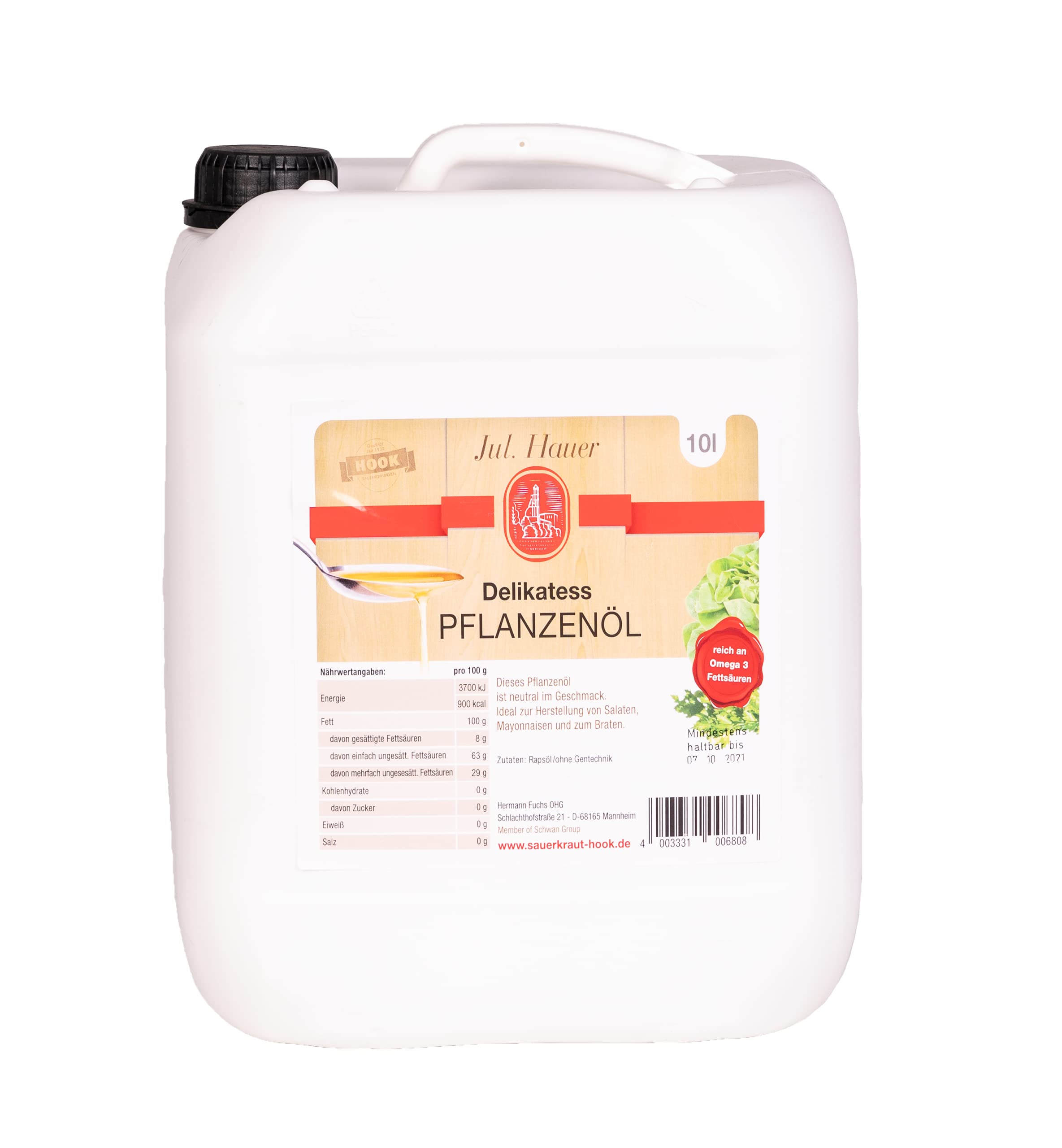 Hauer - Huile végétale délicate (huile de colza), bidon de 10 l