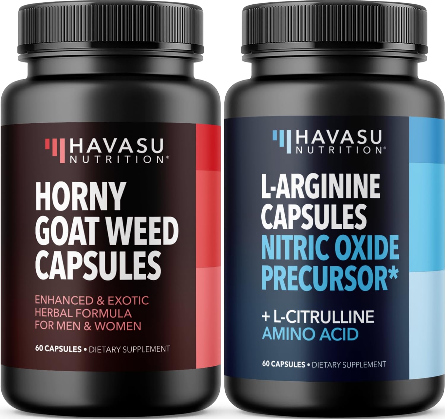 HAVASU NUTRITION Horny Goat Weed Capsules for Men & Women (30 Servings) & Saw Palmetto 500mg L-Arginine 500mg Complex (30 Servings)