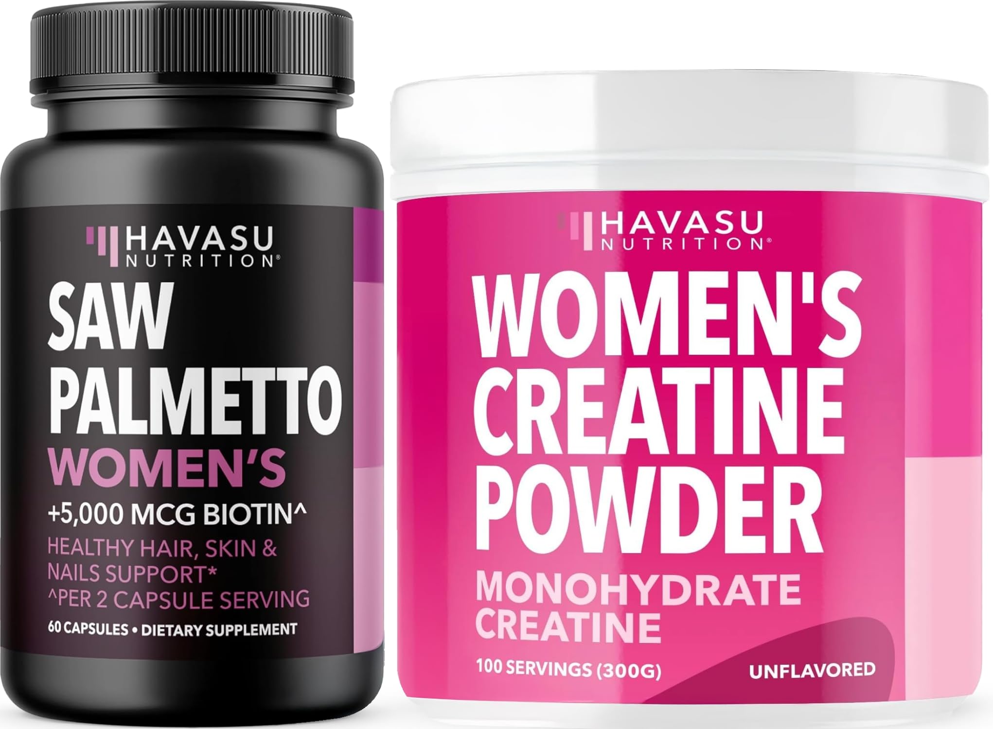 HAVASU NUTRITION Micronized Creatine Monohydrate for Women (100 Servings) & Saw Palmetto for Women Hair Complex (30 Servings)