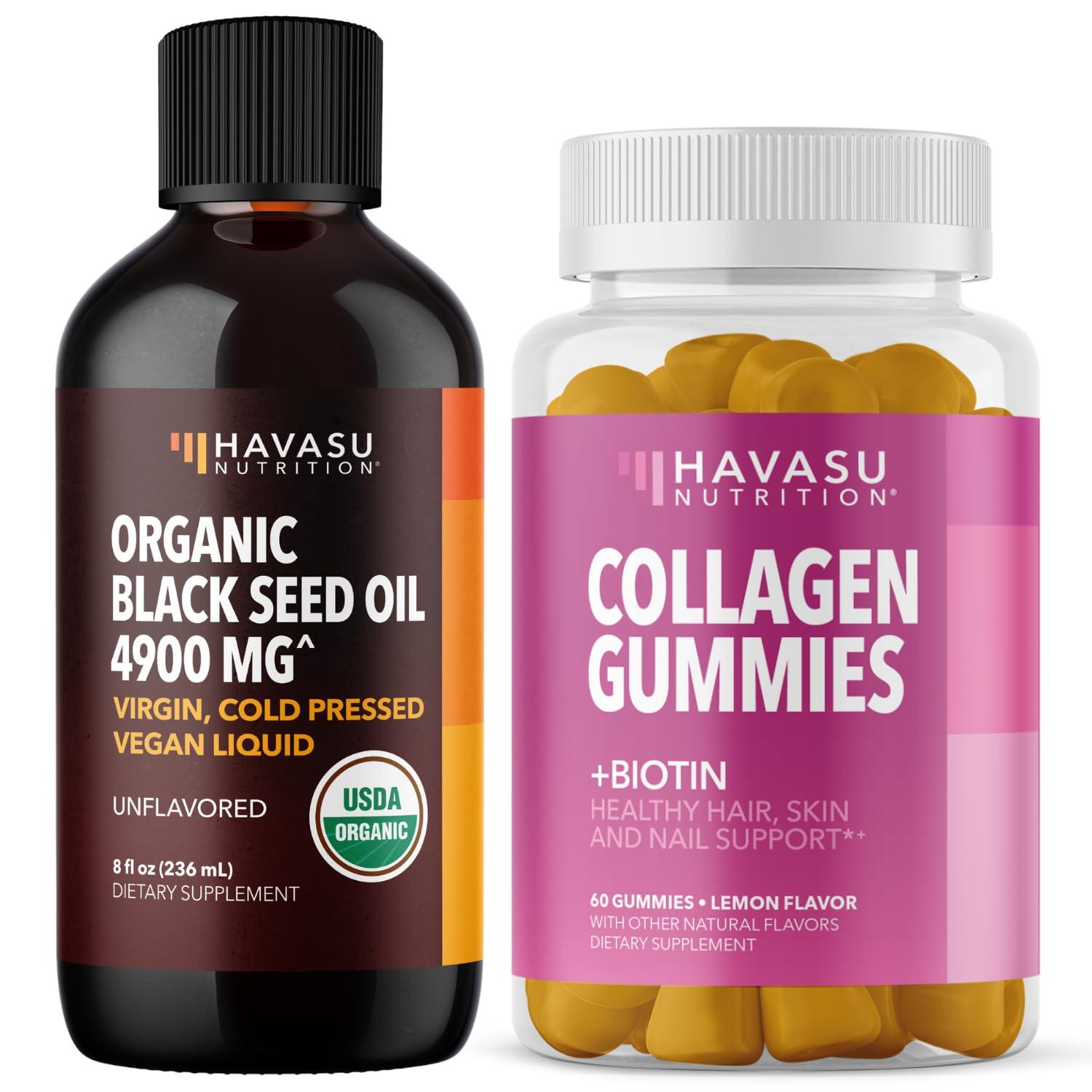 HAVASU NUTRITION Organic Black Seed Oil Liquid + Collagen Gummies Bundle