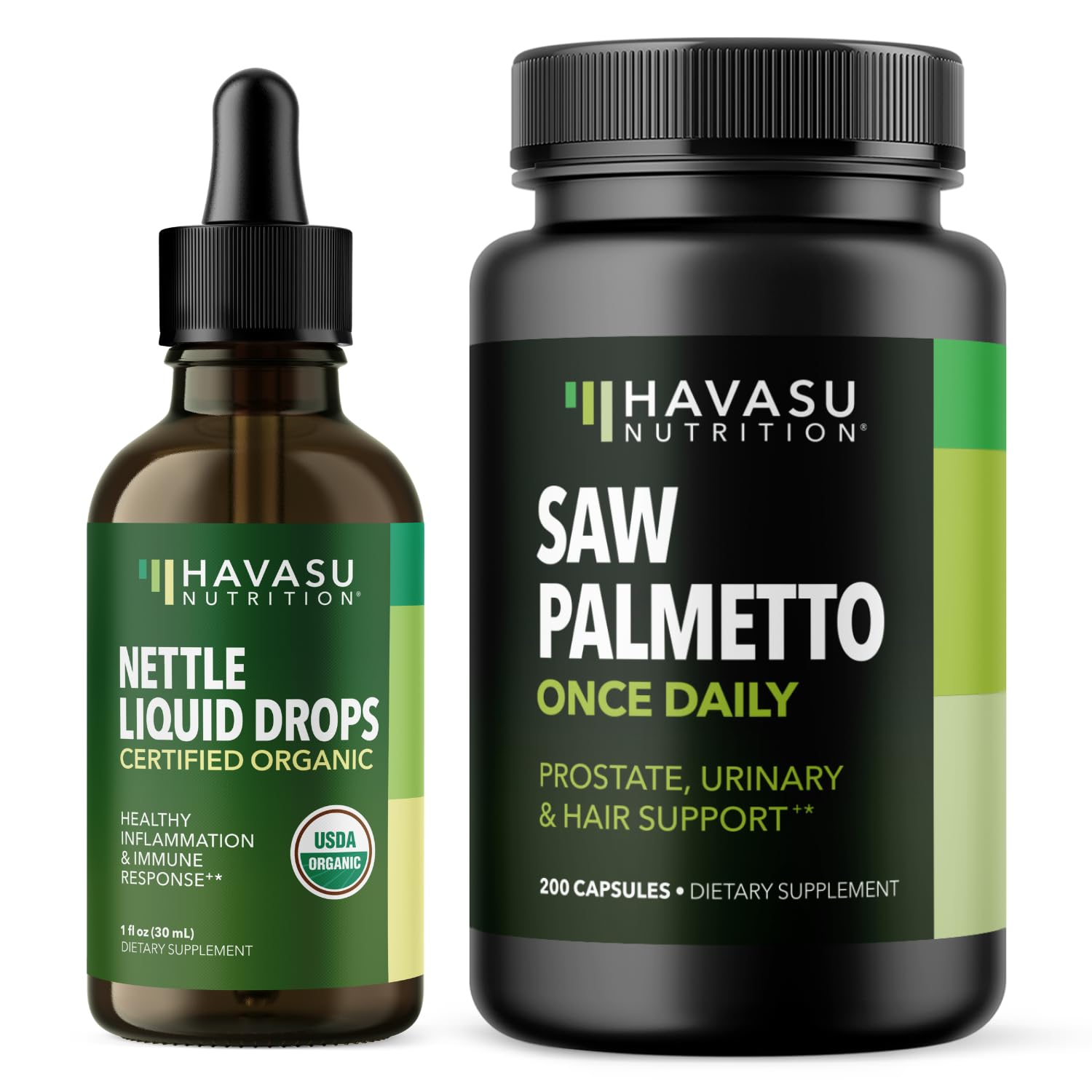HAVASU NUTRITION Organic Nettle Liquid Drops + Saw Palmetto Capsules: Prostate Supplements for Men