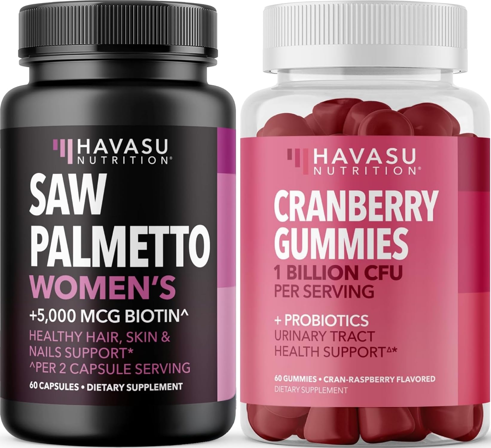 HAVASU NUTRITION Probiotic Cranberry Gummies for Women (30 Servings) & Saw Palmetto for Women Hair Complex (30 Servings)