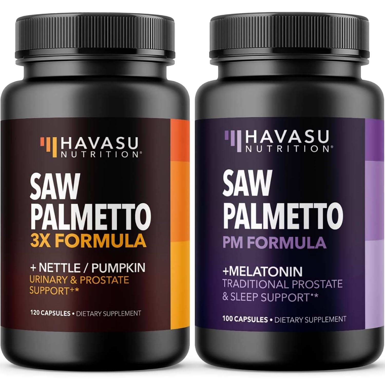 HAVASU NUTRITION Saw Palmetto PM for Men with Melatonin 3mg (60 Servings) & Pumpkin Seed Oil with Saw Palmetto for Men (60 Servings)