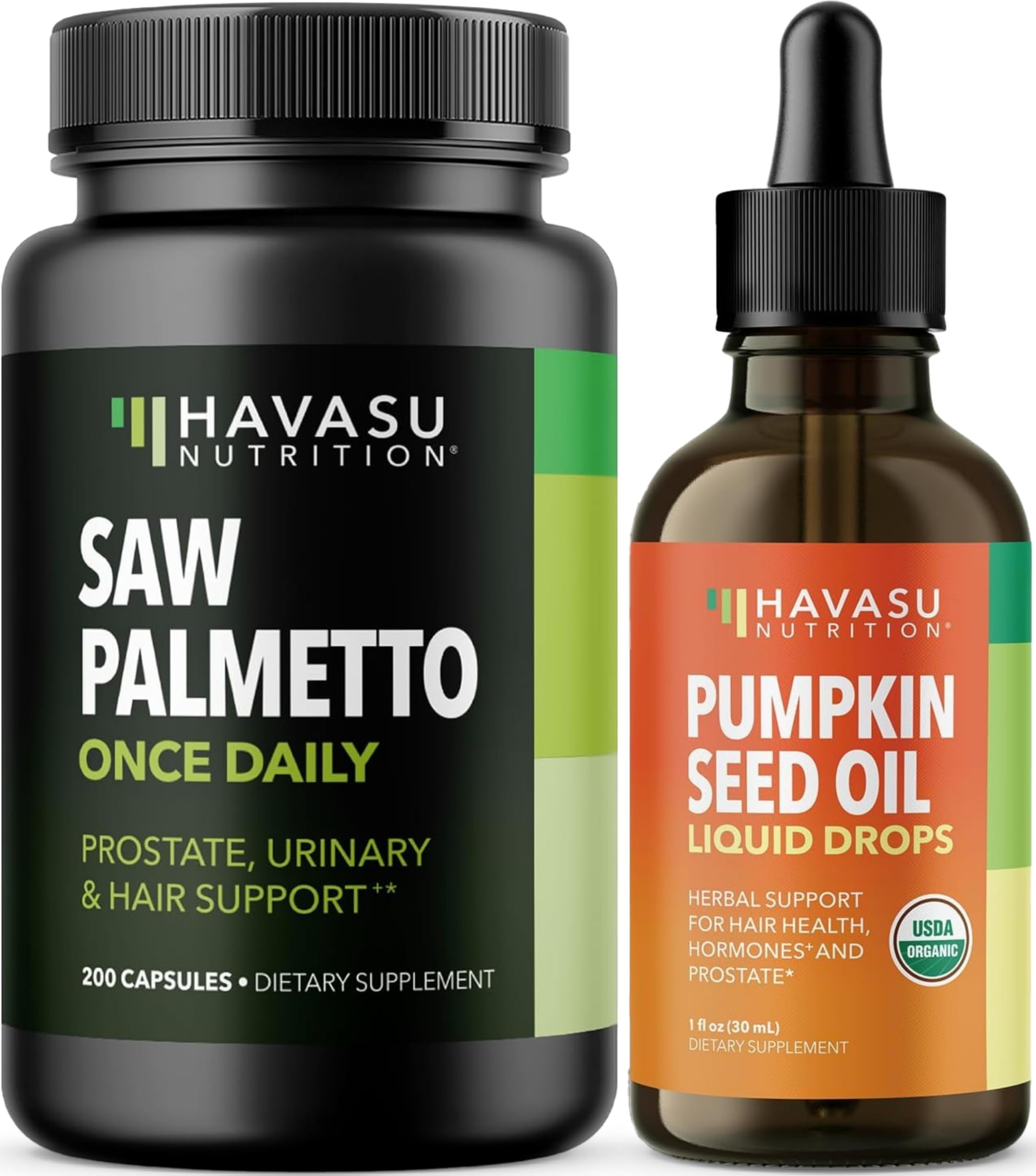 HAVASU NUTRITION USDA Organic Pumpkin Seed Oil Drops (60 Servings) & Saw Palmetto Supplement Capsules (200 Servings)