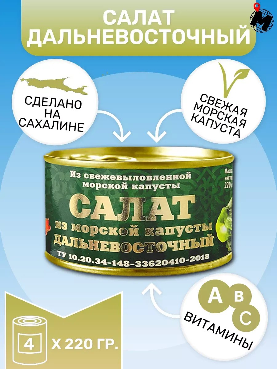 Хавиар Салат из морской капусты консервированный, 4 банки
