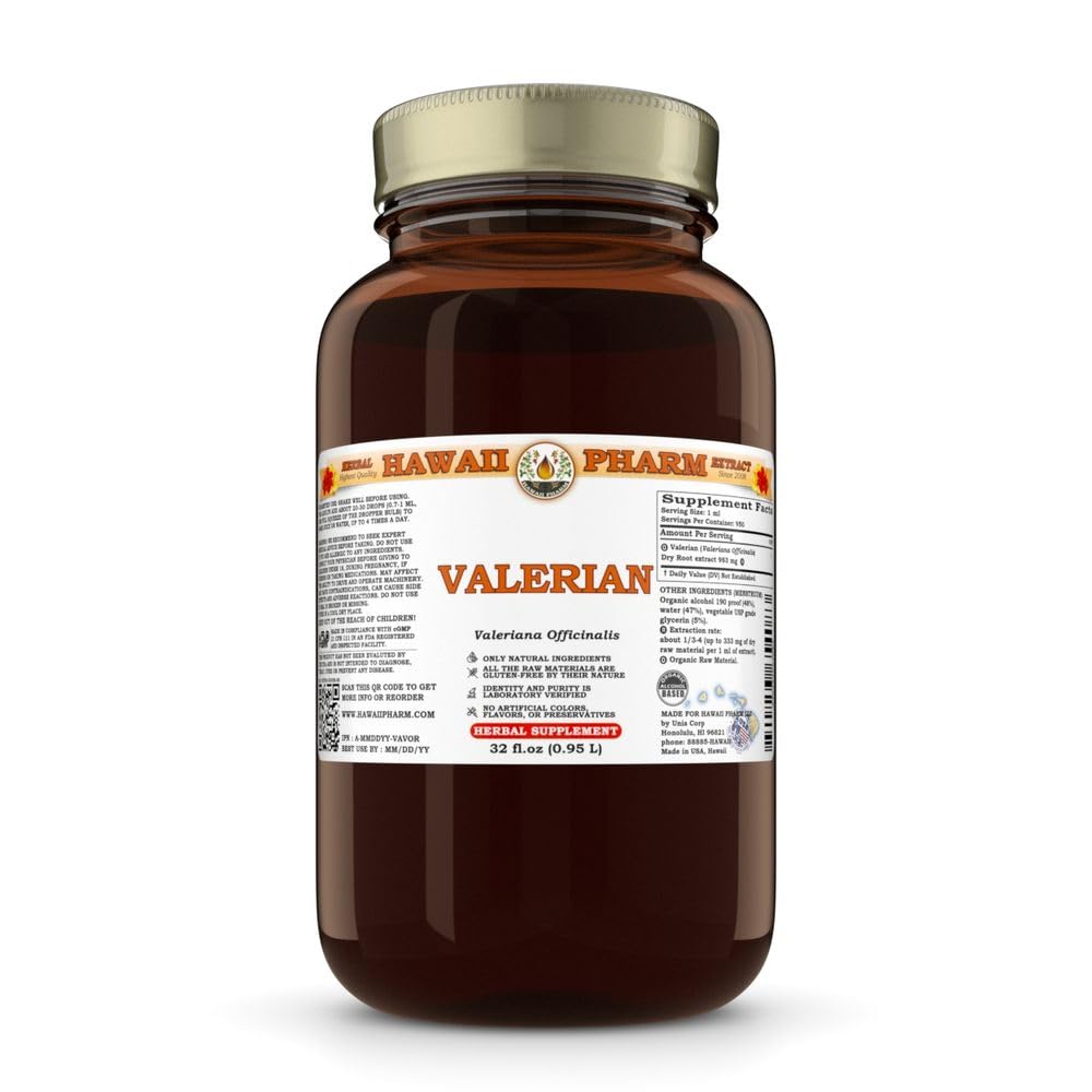Hawaii Pharm Valerian Extract, Tincture for Sleep Support, Promotes Calm, Enhances Women's Wellness, Supports Relaxation, Eases Restlessness - 32 fl.oz 32 Fl Oz (Pack of 1)