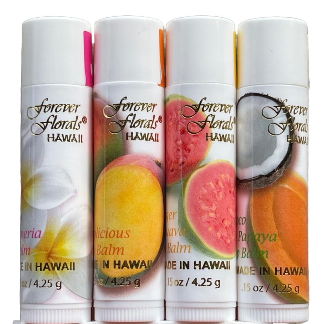 Hawaiian Forever Florals Lip Balm 4 Pack (Plumeria and Fruits)