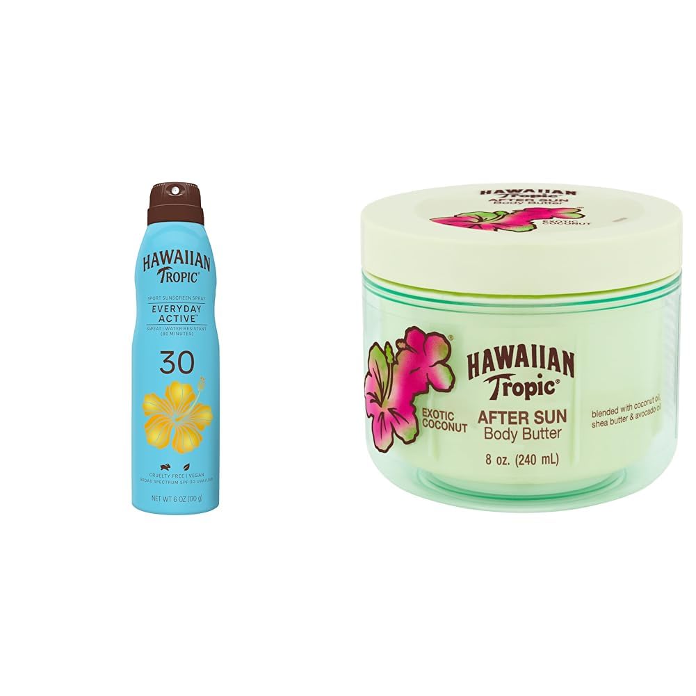 Hawaiian Tropic Everyday Active Clear Spray Sunscreen SPF 30 6oz & After Sun Body Butter with Coconut Oil 8oz