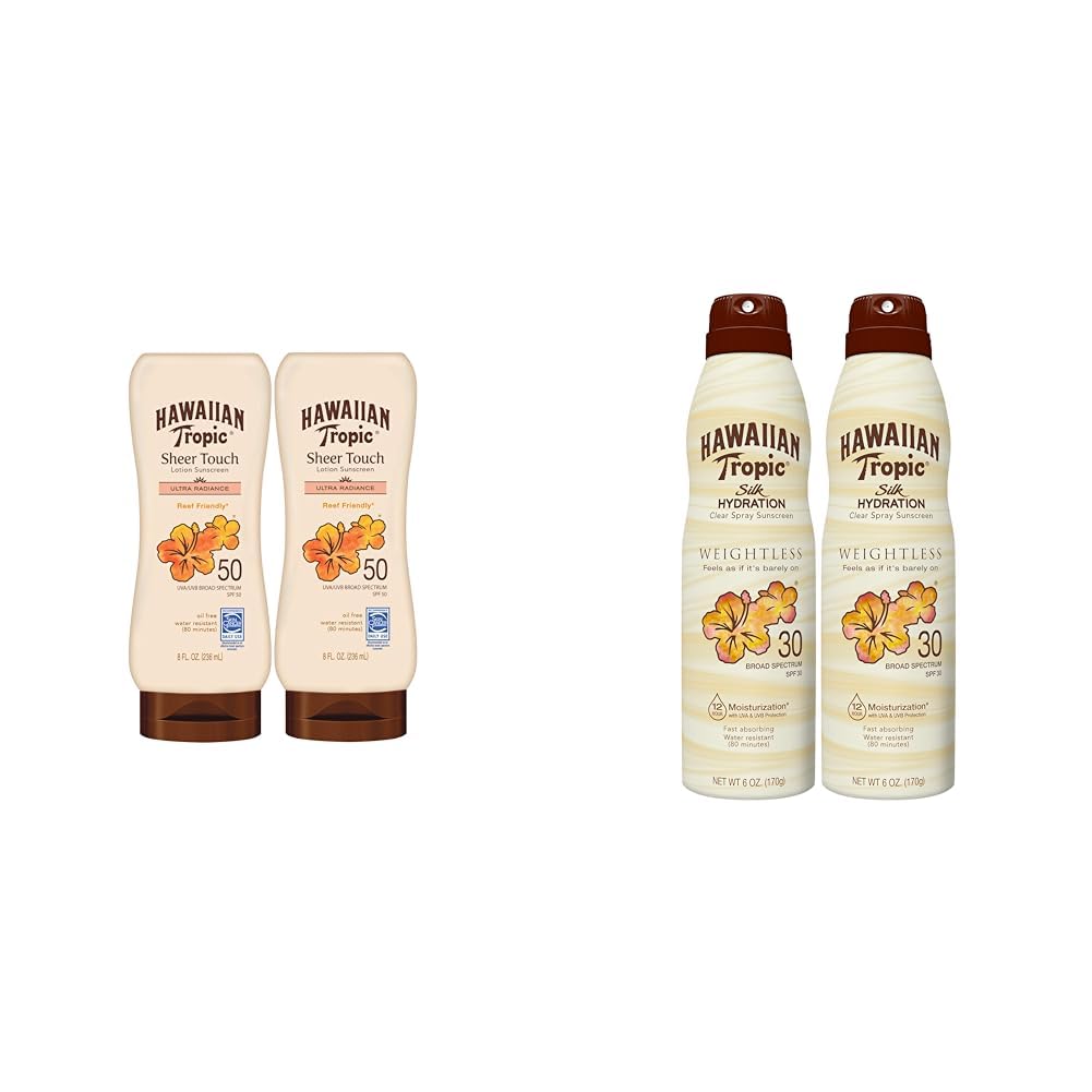 Hawaiian Tropic Sheer Touch Ultra Radiance SPF 50 Twin Pack & Weightless Hydration SPF 30 Clear Spray Sunscreen Twin Pack