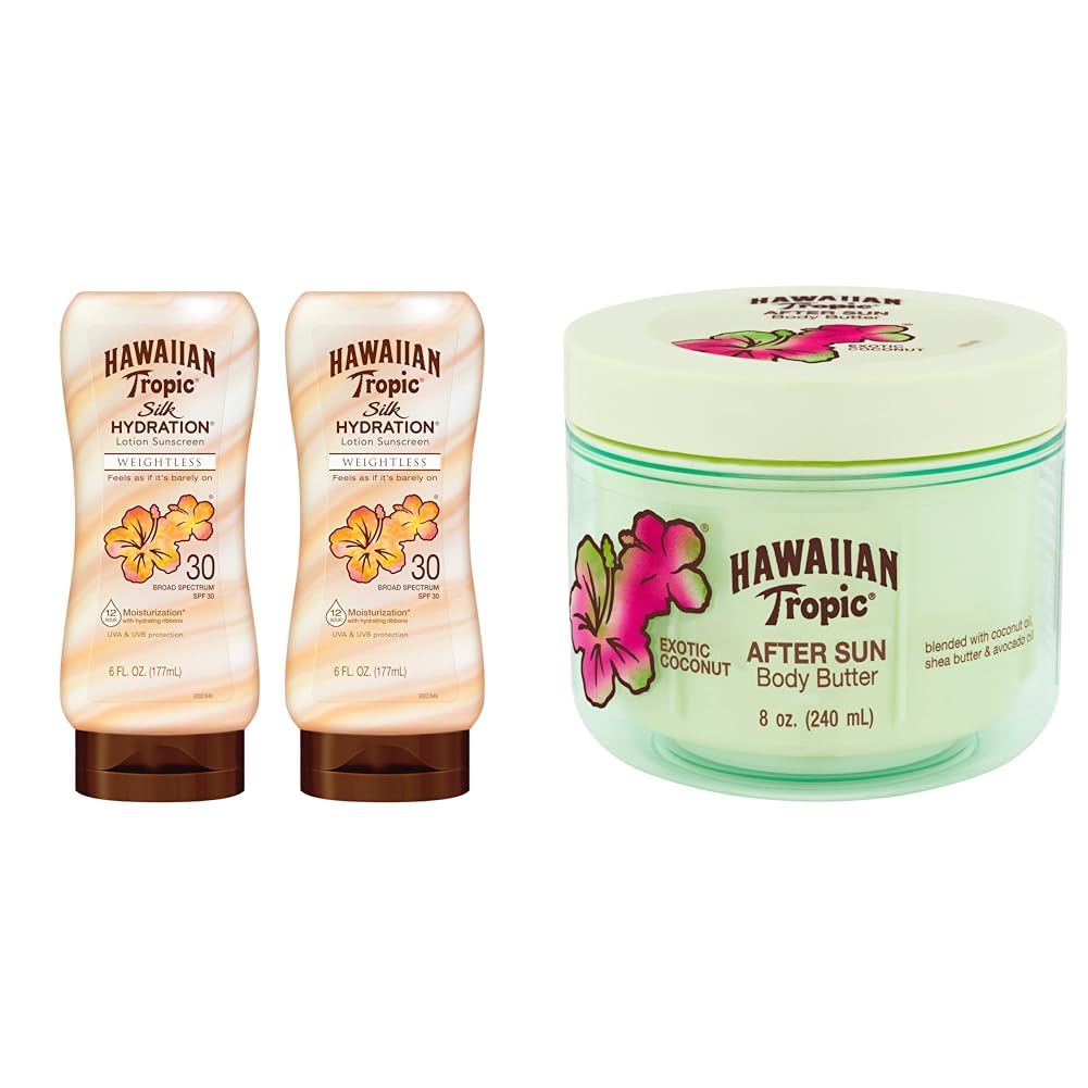 Hawaiian Tropic Weightless Hydration SPF 30 Sunscreen Twin Pack and After Sun Body Butter with Coconut Oil 8oz
