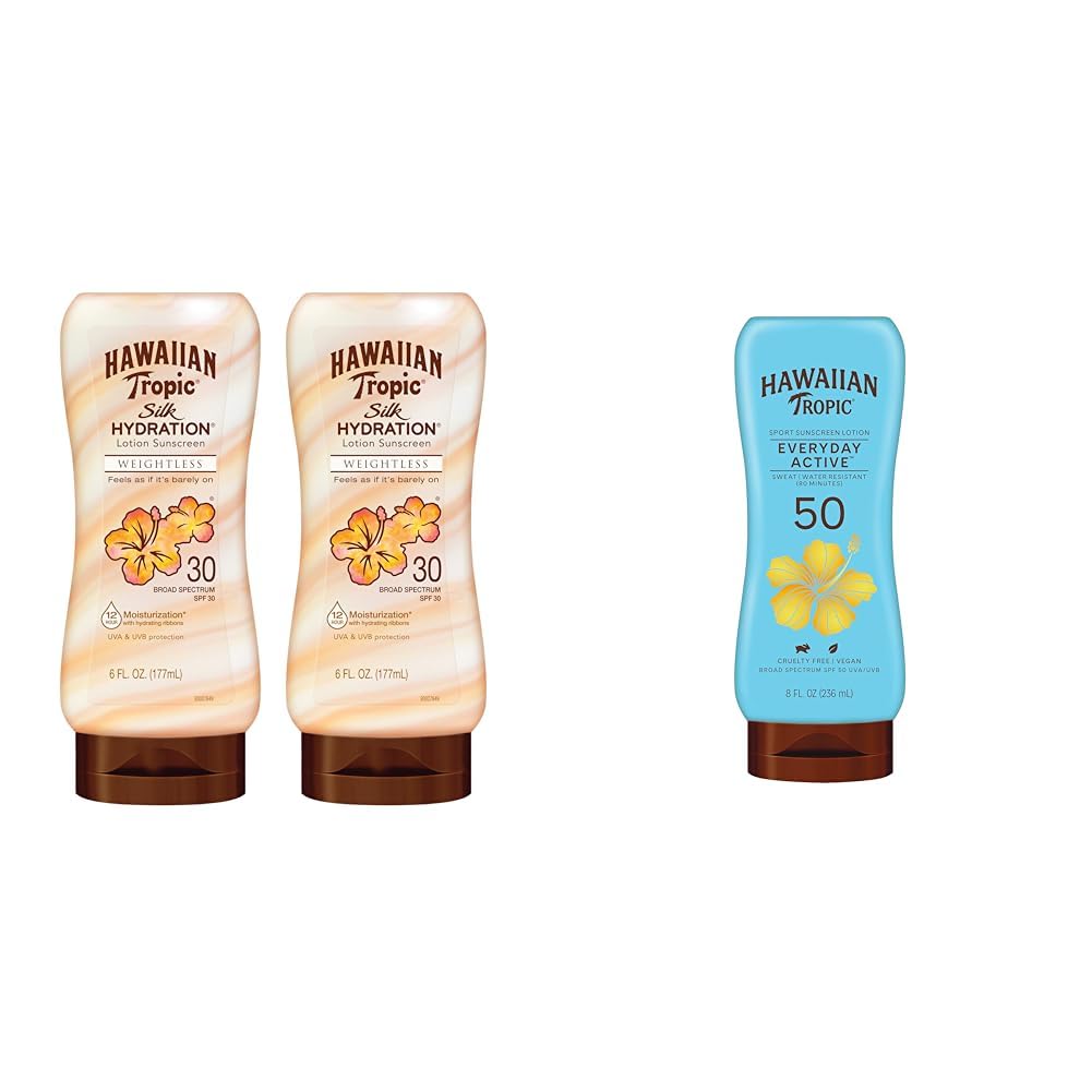 Hawaiian Tropic Weightless Hydration SPF 30 Twin Pack & Everyday Active SPF 50 Sunscreen Lotions Bundle