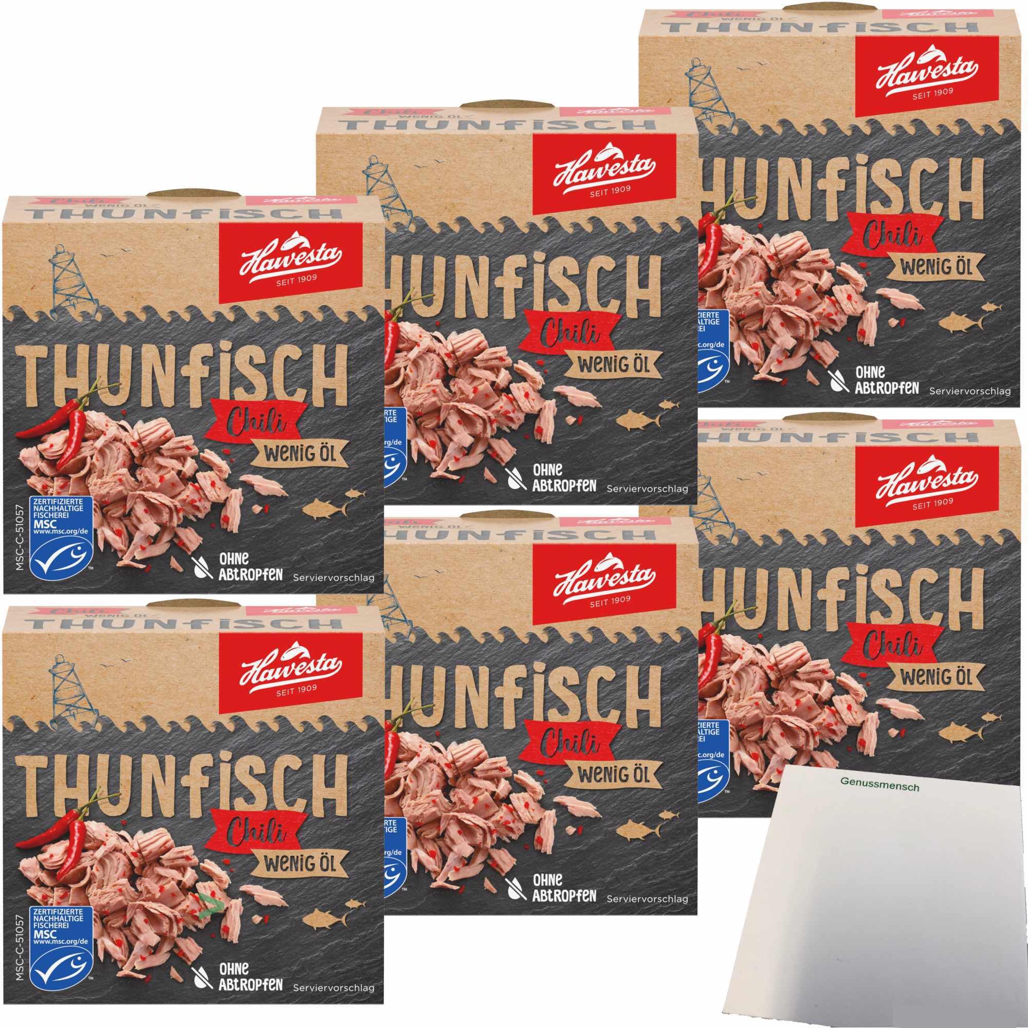 The Hawesta tuna chilli in a little oil MSC offer a delicious and spicy taste for lovers of tuna.In a 110g can you get high-quality tuna, which is already inserted in a savory chilli marinade.Ingredients: 81 %, native olive oil extra 9 %, dried garlic, red chilli puree, salt, chilli, natural chilli aroma, thickener: Guarkern flour.Nutritional values: nutritional values ??per 100g in g: 809kj/193kcal/fat: 10davon saturated fatty acids: 1,6> of them unsaturated fatty acids: 0> of them polyunsaturated fatty acids: 0/carbohydrates: 0.7> of which sugar: 0.2/protein:25/Salz: 1 Allergens: Manufacturer of the individual products :? Usy Product: Brabanat Eurl, 40 Rue Du German M. German, F-67250 Soultz-sous-forets Further products of the bundles: Notes:,Beam note: protect and dryStorage.,Warning:,Danger: Ingredients / ingredients 81 %, Native olive oil extra 9 %, dried garlic, red chilli puree, salt, chili, natural chilli aroma, thickener: guar peat flour. Address manufacturer/importer UNSY Product: Brabanat Eurl, 40 Rue Du Docteur Michel Deutsch, 67250 Soultz-Sous-Forets (France) Other products from the Bundles: Hawesta Feinkoste Hans Westphal GmbH & Co. KG: Van-der Smissen-Straße 3 22767 Hamburg (D) More + usy block: pleasure person.Scope of delivery: 6 -pack (6x110g can).This tuna is perfect as a covering for sandwiches, wraps or salads.It can also be enjoyed as a hearty snack in between.Whether as a protein -rich ingredient for your meals or as a tasteful addition to your dishes - the Hawesta tuna chilli in little oil MSC offer varied pleasure.The Hawesta tuna chilli in a little oil MSC offer a delicious and spicy taste for lovers of tuna.In a 110g can you get high-quality tuna, which is already inserted in a savory chilli marinade.The Hawesta tuna chilli in little oil are of first -class quality and convince with their delicate and juicy meat.The spicy chili marinade gives the tuna a pleasant sharpness and an exotic note.Hawesta tuna chili little oil MSC. Die Hawesta Thunfisch Chili in wenig Öl MSC bieten einen köstlichen und würzigen Geschmack für Liebhaber von Thunfisch. In einer 110g Dose erhalten Sie hochwertigen Thunfisch, der bereits in einer pikanten Chili-Marinade eingelegt ist. Zutaten: 81 %, natives Olivenöl extra 9 %, getrockneter Knoblauch, rotes Chili Püree, Salz, Chili, natürliches Chili Aroma, Verdickungsmittel: Guarkernmehl. Nährwerte: Nährwerte pro 100g in g :809KJ/193Kcal/Fett:10davon gesättigte Fettsäuren:1,6 >davon ungesättigte Fettsäuren:0>davon mehrfach ungesättigte Fettsäuren:0/Kohlenhydrate:0,7>davon Zucker:0,2/Eiweiß:25/Salz:1 Allergene: Hersteller der Einzelprodukte: ?usy Product: brabanat EURL, 40 rue du Dt. M. Deutsch, F-67250 Soultz-Sous-Forets weitere Produkte des Bundles: Hinweise:,Lagerhinweis:Vor Wärme schützen und trocken lagern.,Warnhinweis:,Gefahr: INHALTSSTOFFE / ZUTATEN 81 %, natives Olivenöl extra 9 %, getrockneter Knoblauch, rotes Chili Püree, Salz, Chili, natürliches Chili Aroma, Verdickungsmittel: Guarkernmehl. ANSCHRIFT HERSTELLER/IMPORTEUR usy Product: brabanat EURL, 40 rue du Docteur Michel Deutsch, 67250 Soultz-Sous-Forets (France) weitere Produkte des Bundles: Hawesta Feinkost Hans Westphal GmbH & Co. KG: Van-der-Smissen-Straße 3 22767 Hamburg (D) Mehr+ usy Block: Genussmensch. Lieferumfang: 6er Pack (6x110g Dose). Dieser Thunfisch eignet sich perfekt als Belag für Sandwiches, Wraps oder Salate. Er kann auch als herzhafter Snack zwischendurch genossen werden. Ob als proteinreiche Zutat für Ihre Mahlzeiten oder als geschmackvolle Ergänzung für Ihre Gerichte - die Hawesta Thunfisch Chili in wenig Öl MSC bieten vielseitigen Genuss. Die Hawesta Thunfisch Chili in wenig Öl MSC bieten einen köstlichen und würzigen Geschmack für Liebhaber von Thunfisch. In einer 110g Dose erhalten Sie hochwertigen Thunfisch, der bereits in einer pikanten Chili-Marinade eingelegt ist. Die Hawesta Thunfisch Chili in wenig Öl sind von erstklassiger Qualität und überzeugen mit ihrem zarten und saftigen Fleisch. Die würzige Chili-Marinade verleiht dem Thunfisch eine angenehme Schärfe und eine exotische Note. Hawesta Thunfisch Chili wenig ÖL MSC.Hawesta Thunfisch Chili wenig ÖL MSC 6er Pack (6x110g Dose) + usy Block
