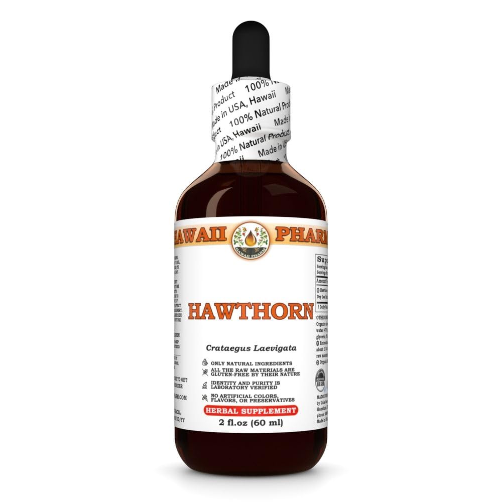 Made in the USA with Superior Quality: Proudly crafted in the USA (Hawaii), our Hawthorn Extract uses select, high-quality ingredients sourced from trusted suppliers. Each batch undergoes rigorous laboratory testing to ensure it meets the highest standards of safety and potency. By choosing Hawaii Pharm, you are supporting American-made products and a brand dedicated to delivering the best in herbal extracts. 100 Natural Pure: Trust in Hawaii Pharm's commitment to excellence. Our Hawthorn Extract is a 100 natural product, free from additives, colorants, flavorings, and sugars. This ensures you receive the purest form of the herb without any unwanted ingredients. Our rigorous quality control measures guarantee the highest standards of purity and effectiveness, providing you with a product you can trust. Superior Absorption and Easy Use: Our liquid Hawthorn Extract offers superior absorption compared to tablets and capsules, ensuring your body quickly and fully benefits from its calming properties. Easy to use, simply mix it with water or your favorite beverage for convenient consumption. This makes it an ideal choice for those seeking quick and efficient results without the hassle of swallowing pills. Promotes Calm and Resilience: Hawthorn Leaf and Flower Extract is also appreciated for its soothing properties, traditionally used to encourage relaxation and ease occasional tension. With its natural compounds, this extract supports both physical and emotional well-being, making it a trusted choice for a balanced lifestyle. Supports Heart and Circulation: Hawthorn Leaf and Flower Extract has long been cherished for its role in promoting cardiovascular function. Rich in flavonoids and powerful antioxidants, this botanical is traditionally used to encourage natural blood flow and support heart vitality. Incorporating hawthorn into your routine can help maintain circulation and overall balance.