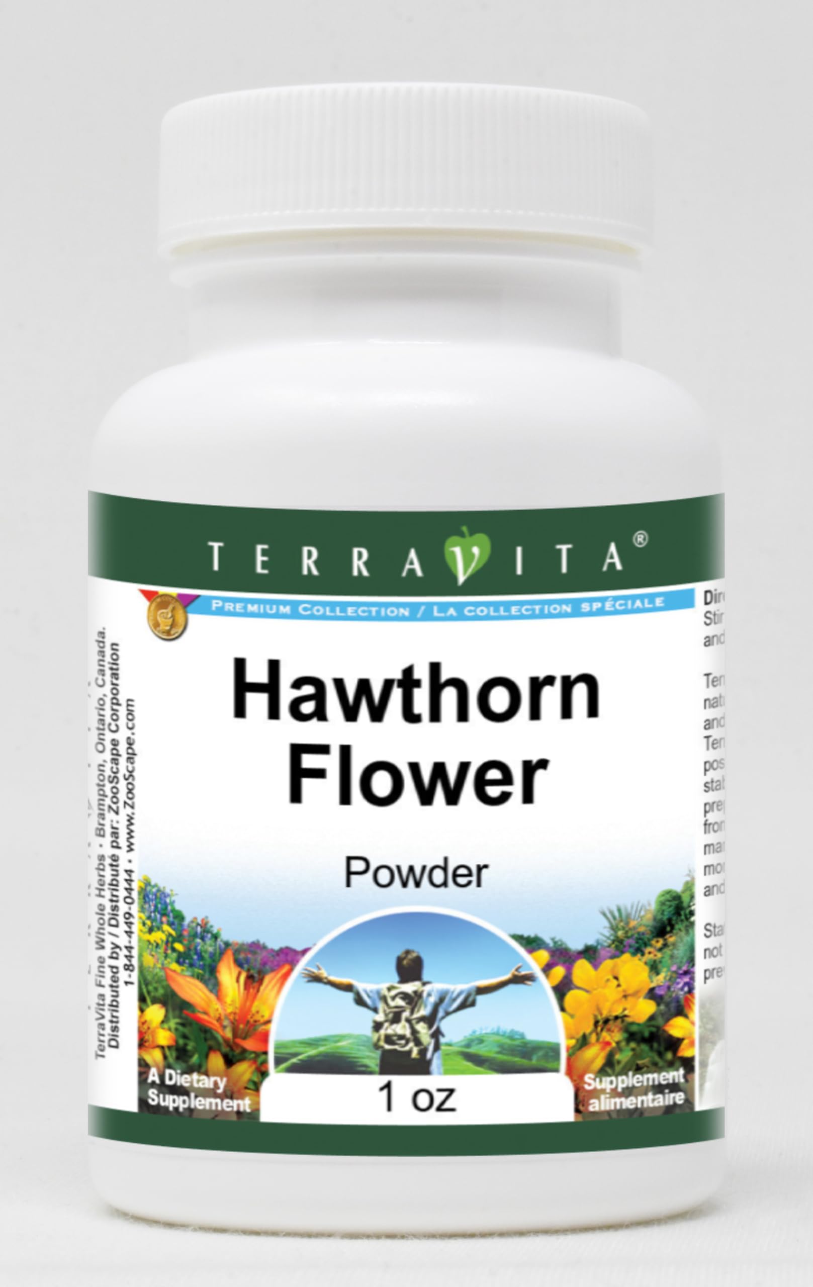 Hawthorn Flower Powder (1 oz, ZIN: 511326) Packaged in the United States in a GMP certified facility (Good Manufacturing Practice). No fillers. Manufacturer: TerraVita Size: 1 oz Convenient Powder format. Ingredients: Hawthorn Flower