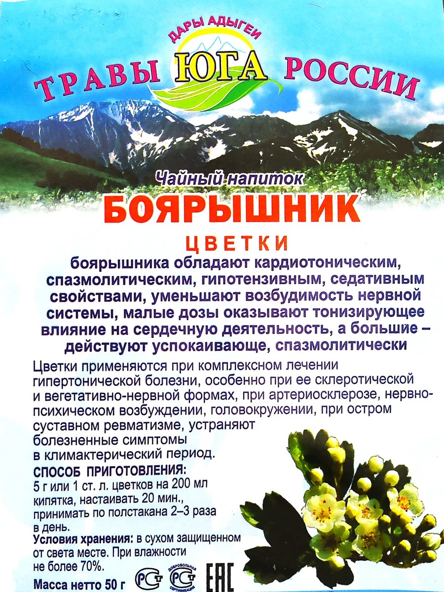 | Состав травяного сбора | 100% цветки боярышника |