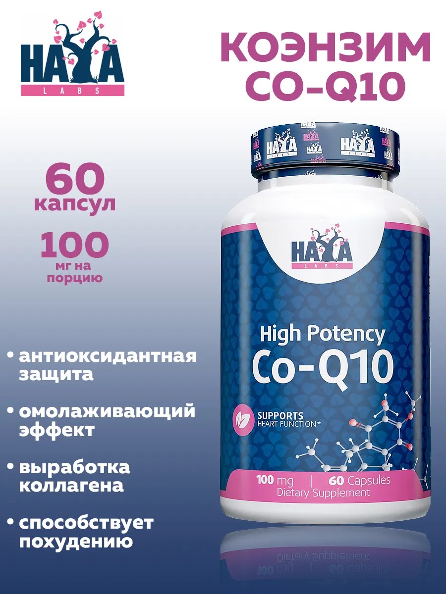 Высокоэффективный коэнзим Q10 60 капсул от Haya Labs – мощный антиоксидант, поможет поддержать иммунную систему, важен для клеточной ткани и плотности костей.