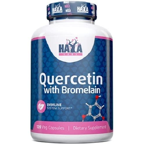 QUERCETIN WITH BROMELAIN from HAYA LABS contains Quercetin in combination with Bromelain, in vegetarian capsules! QUERCETIN WITH BROMELAIN HAYA LABS PROPERTIES: Quercetin (pronounced Kersetin) is a mixture derived from plants. Quercetin provides the color of red wine. It is also found in apples, onions, green tea, grapefruit, black tea, leafy vegetables and beans. Bromelain is extracted from both the stem of the pineapple plant and the juice of the pineapple. Don't wait any longer and order Quercetin with Bromelain from Haya Labs now safely and quickly at Body Supplies! QUERCETIN WITH BROMELAIN HAYA LABS FEATURES: Quercetin Bromelain 120 Vegetarian Capsules INGREDIENTS Per serving: 2 Cellulose capsule, magnesium stearate and silica. INSTRUCTIONS FOR USE Take 2 capsules 1 to 2 times a day before meals. SAFETY WARNING A nutritional supplement is not a substitute for a varied diet. This supplement is not suitable for people under the age of 18. Do not exceed recommended daily dosage. See moreQUERCETIN WITH BROMELAIN from HAYA LABS contains Quercetin in combination with Bromelain, in vegetarian capsules! Quercetin Bromelain 120 Vegetarian capsules.Quercetin with Bromelain 120v-caps QUERCETIN WITH BROMELAIN van HAYA LABS bevat Quercetine in combinatie met Bromelaïne, in vegetarische capsules! QUERCETIN WITH BROMELAIN HAYA LABS EIGENSCHAPPEN: Quercetin (spreek uit als Kersetine) is een mengsel afkomstig uit planten. Quercetine zorgt voor de kleur van Rode Wijn. Daarnaast komt het voor in appels, uien, groene thee, grapefruit, zwarte thee, bladgroenten en bonen. Bromelaïne wordt zowel uit de steel van de ananasplant, als uit het sap van de ananas gewonnen. Wacht niet langer en bestel nu Quercetin with Bromelain van Haya Labs veilig en snel bij Body Supplies! QUERCETIN WITH BROMELAIN HAYA LABS KENMERKEN: Quercetine Bromelaine 120 Vegetarische capsules INGREDIËNTEN Per serving: 2 Cellulosecapsule, magnesiumstearaat en silica. GEBRUIKSAANWIJZING Neem 2 capsules 1 tot 2 maal per dag voor de maaltijd. VEILIGHEIDSWAARSCHUWING Een voedingssupplement is geen vervanging voor een gevarieerde voeding. Dit suplement is niet geschikt voor personen beneden de 18 jaar. Aanbevolen dagdosering niet overschrijden. Meer bekijkenQUERCETIN WITH BROMELAIN van HAYA LABS bevat Quercetine in combinatie met Bromelaïne, in vegetarische capsules! Quercetine Bromelaine 120 Vegetarische capsules.