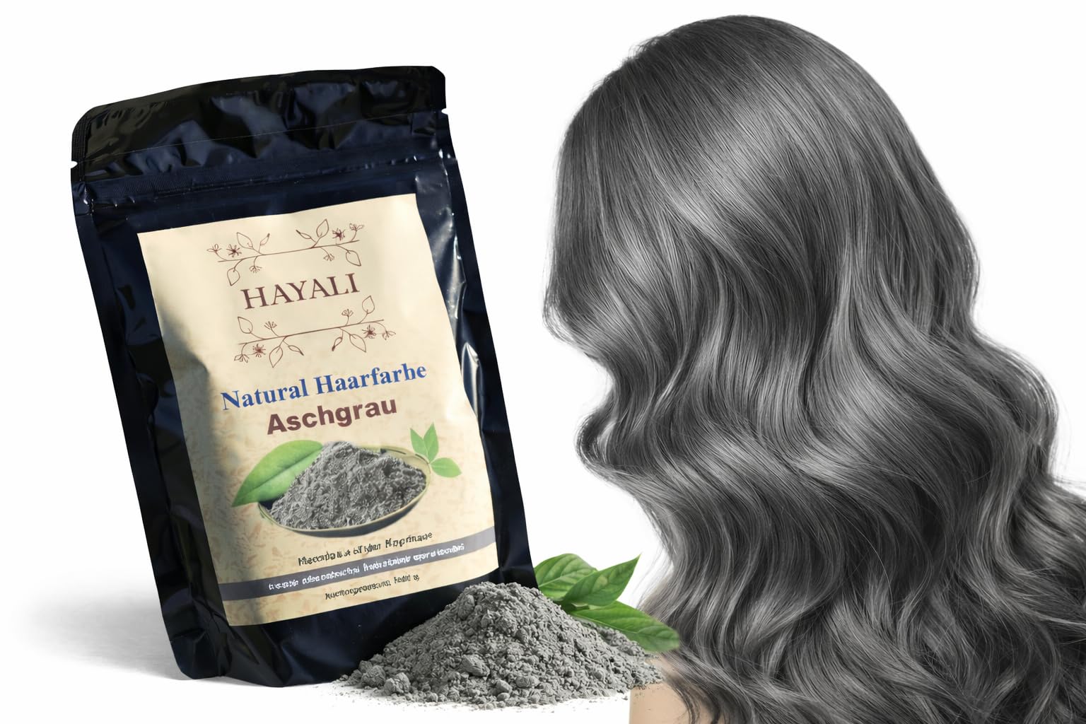 Hayali Coloration naturelle pour cheveux gris au henn 100 g sans produits chimiques couleur gris cendr