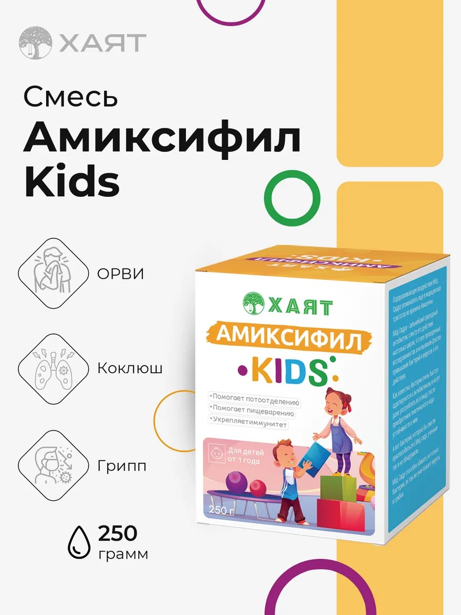 Амиксифил Kids от ХАЯТ — смесь, созданная специально для детей с учётом особенностей их растущего организма. Этот натуральный препарат объединяет в себе богатый комплекс природных компонентов, направленных для пищеварения, для иммунитета детям, а также для повышения защитных функций организма. Продукт разработан для детей от года и идеально подходит в периоды простуд и сезонных заболеваний.