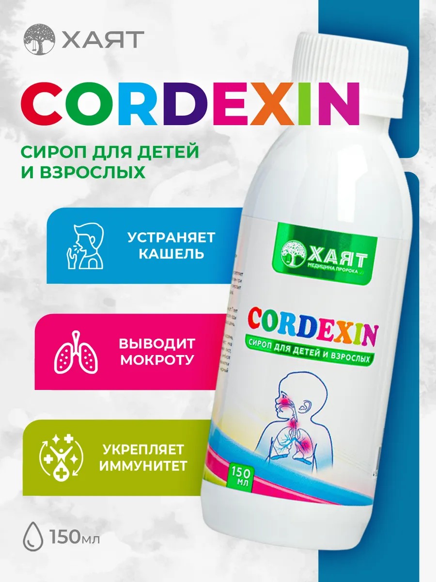 Если вы ищете натуральное средство, которое поможет при кашле, при бронхите, при простуде, при пневмонии, при ангине, при коклюше, при астме и других заболеваниях дыхательной системы — сироп cordexin от хаят станет лучшим решением для всей семьи. Это эффективное и проверенное временем средство, которому доверяют взрослые и дают детям. Используйте cordexin для поддержания здоровья, профилактики и восстановления!