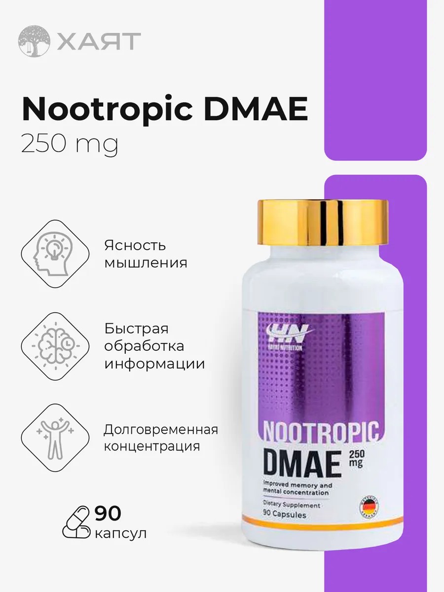 Nootropic DMAE 250 mg от ХАЯТ — мощный ноотроп в капсулах для мозга, памяти, концентрации, энергии и настроения.