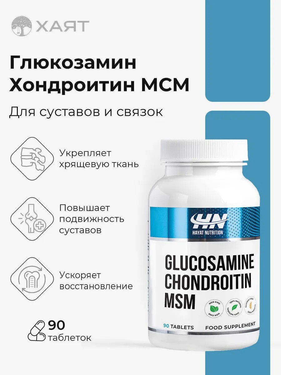 Glucosamine Chondroitin MSM Хаят — это сбалансированный комплекс для поддержки здоровья опорно-двигательного аппарата. Препарат разработан с учётом потребностей взрослым, спортсменам, а также тем, кто сталкивается с такими проблемами, как остеохондроз, остеоартроз 1, 2 и 3 степени, дегенеративно дистрофические заболевания и боли в области поясничного отдела и позвоночника. Глюкозамин хондроитин мсм — важные компоненты для питания суставов, восстановления хрящевой ткани и нормализации работы всего опорно-двигательного аппарата.