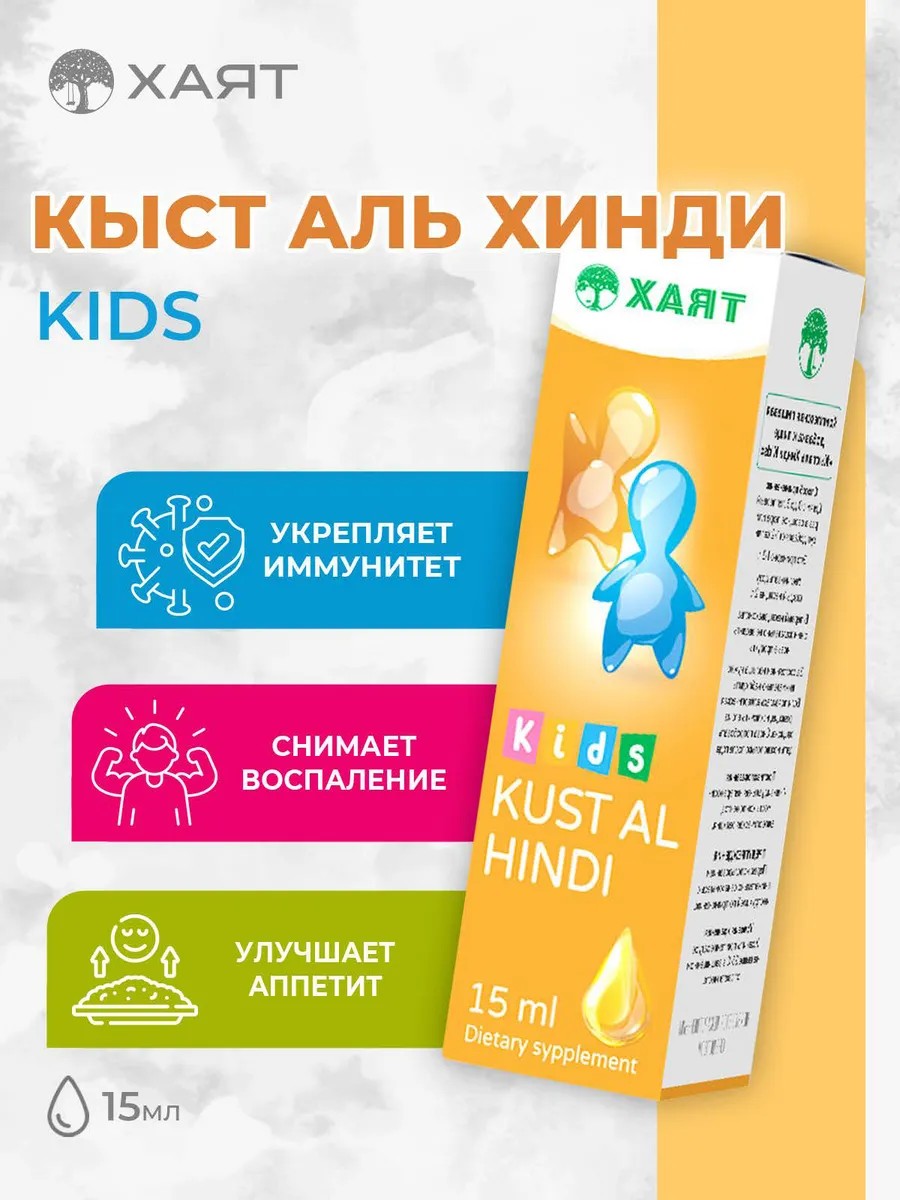 Выбирайте капли Kust Al Hindi Kids от Хаят для комплексной поддержки здоровья вашего ребенка!