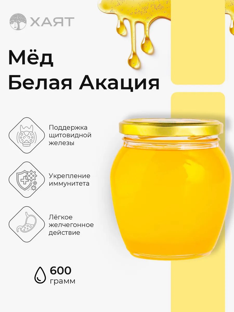Мёд Белая Акация — это природный продукт без сахара, который совмещает в себе вкус, пользу и безопасность. Подходит для поднятия жизненного тонуса, укрепления иммунной системы и эффективного восстановления. Идеален для тех, кто выбирает натуральные препараты и лучшие средства для здоровья. Выбирайте мёд Хаят — и вы получите не просто сладость, а настоящий ресурс силы, энергии и защиты от вирусов!