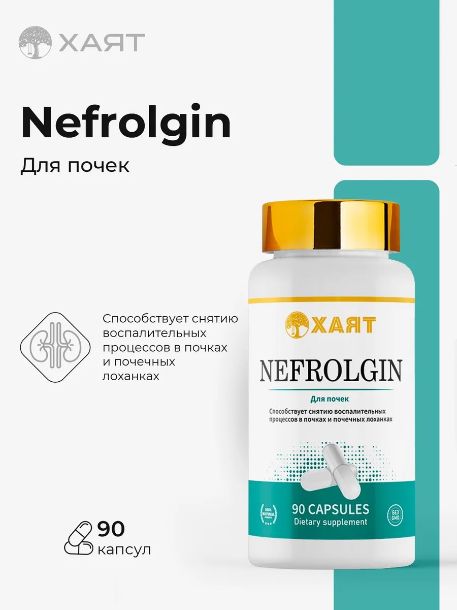 Капсулы Nefrolgin от Хаят — это эффективное средство для почек, обладающее комплексным действием от отеков и для мочевыводящих путей. Данный препарат создан на основе натуральных компонентов и направлен на поддержание и восстановление здоровья мочевыделительной системы у взрослых. Благодаря уникальному составу, нефролгин оказывает выраженное противовоспалительное действие, способствует выведению песка, мелких камней в почках, а также нормализации показателей мочи в норме.