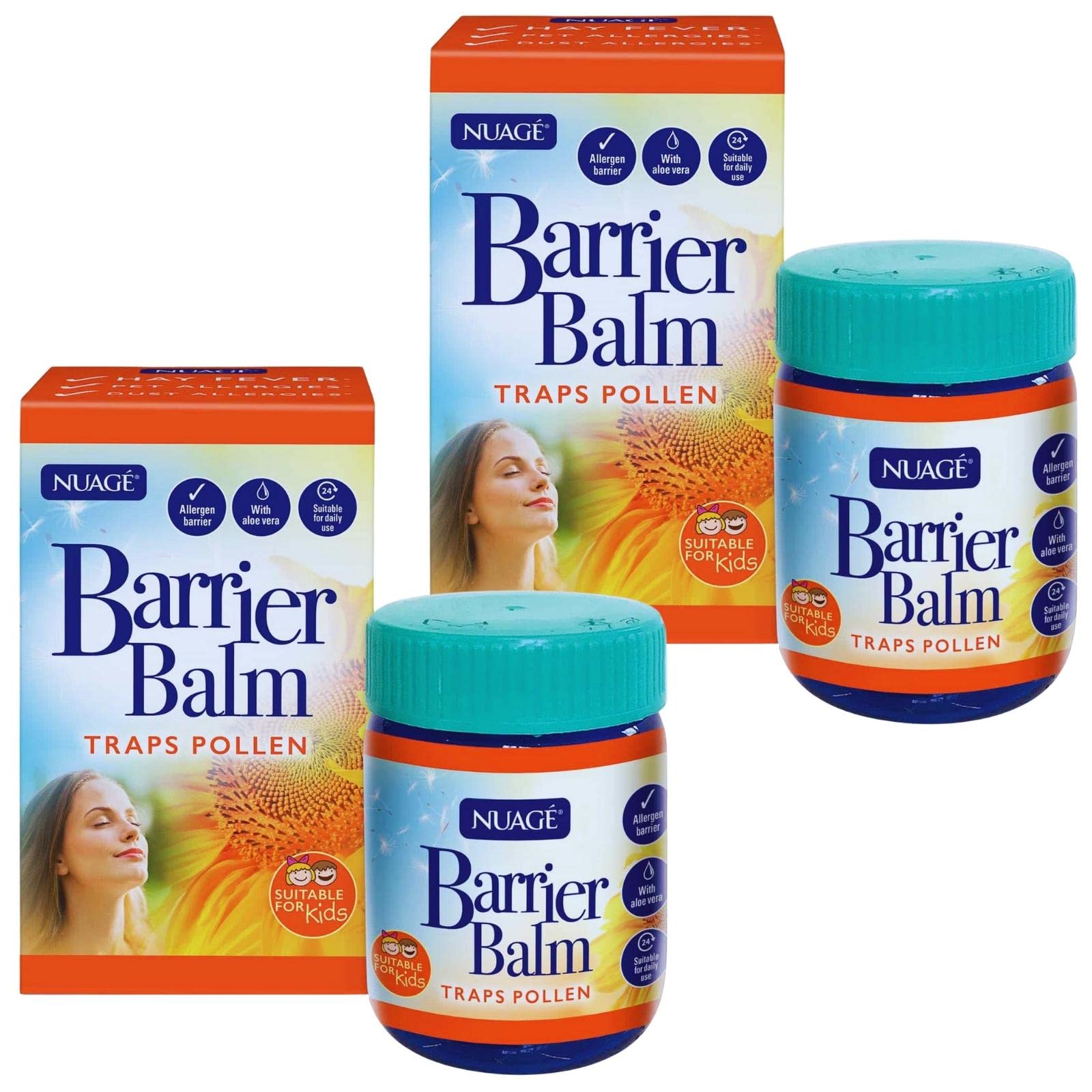 Suitable for daily use, and for children. Helps creates a physical barrier, reducing pollen, allergens and dust entering the nose. An allergen barrier that contains aloe vera for a refreshed feeling. It is safe for vegans and vegetarians. 2x Nuage Pollen Barrier Balm 50g.